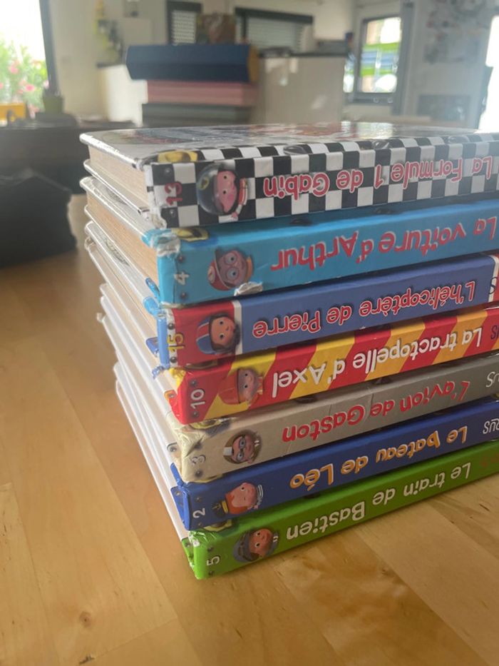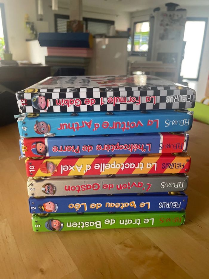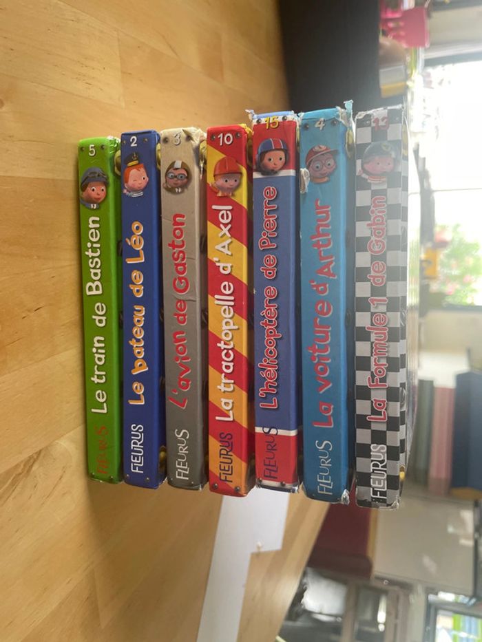 Lot de 7 livres de la collection p’tit garçon La formule 1 de Gabin La tractopelle d’Axel L’avion de Gaston L’hélicoptère de Pierre Le bateau de Léo Le train de Bastien La voiture d’Arthur Ils sont en très bon état dans l’ensemble hormis l’hélicoptère de Pierre la voiture d’Arthur qui ont les coins abîmés (photos) La formule 1 de Gabin a également des marques en haut et bas de la tranche Livres fleurus Envoi soigné et rapide