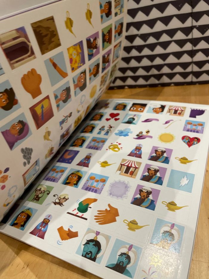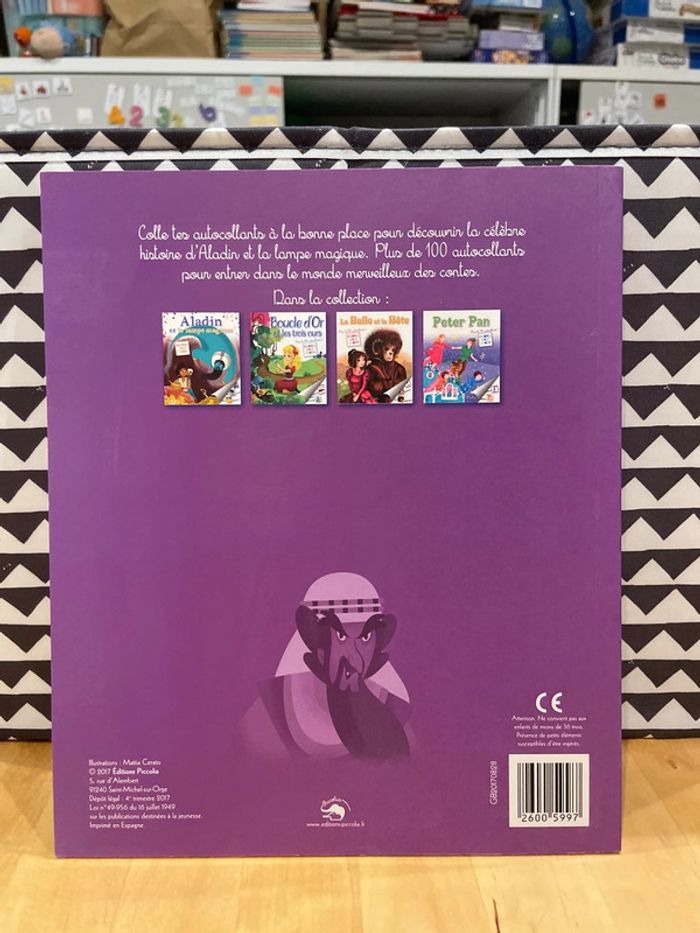 Livre neuf Plus de 100 autocollants à coller au cours de l’histoire Aladdin Piccolia