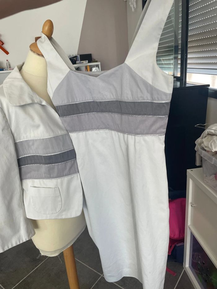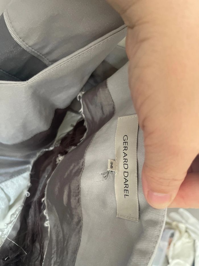 Veste taille 40 Gérard Darel Parfait état sort du pressing Joli rendu et effet très légèrement pailleté J’offre avec la robe assortie taille 36 qui est en bon état d’extérieur (une petite tache toutefois) mais qui est très abîmée à l’intérieur (doublure déchirée), il faudrait refaire la doublure. C’est sans doute réalisable par quelqu’un de plus doué que moi en couture 😅