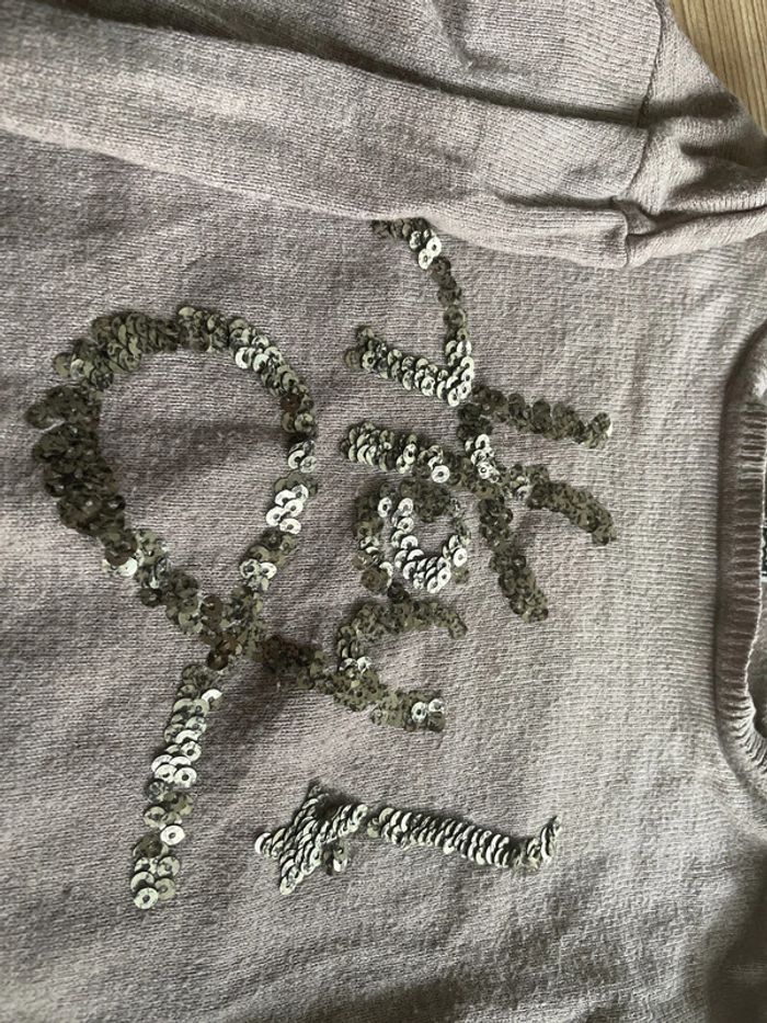 Petit pull TAO 4 ans Hey ! Écrit en sequins Porté quelques fois Bon état pas de défauts Couleur taupe