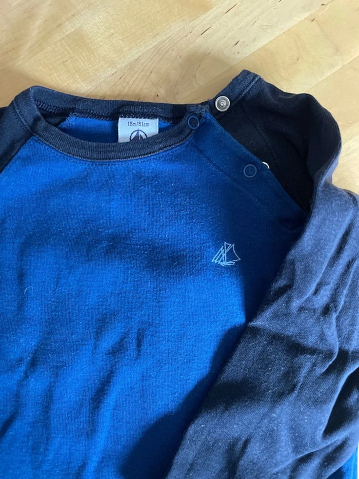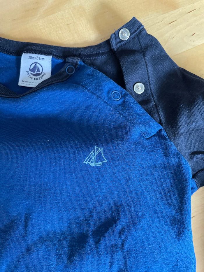 TEE Shirt bébé petit bateau 18 mois Encolure large grâce aux boutons pressions Deux couleurs bleu et bleu marine Excellent état car très très peu porté