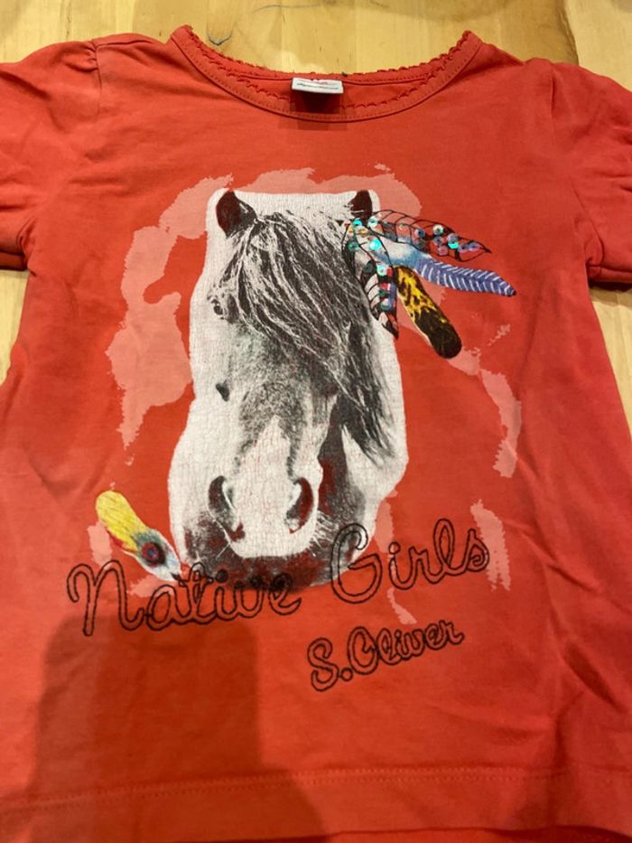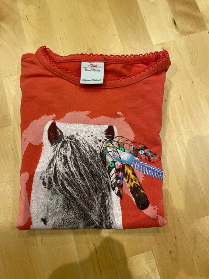 Joli teeshirt s. Oliver avec un poney / cheval représenté Très bon état 3/4 ans