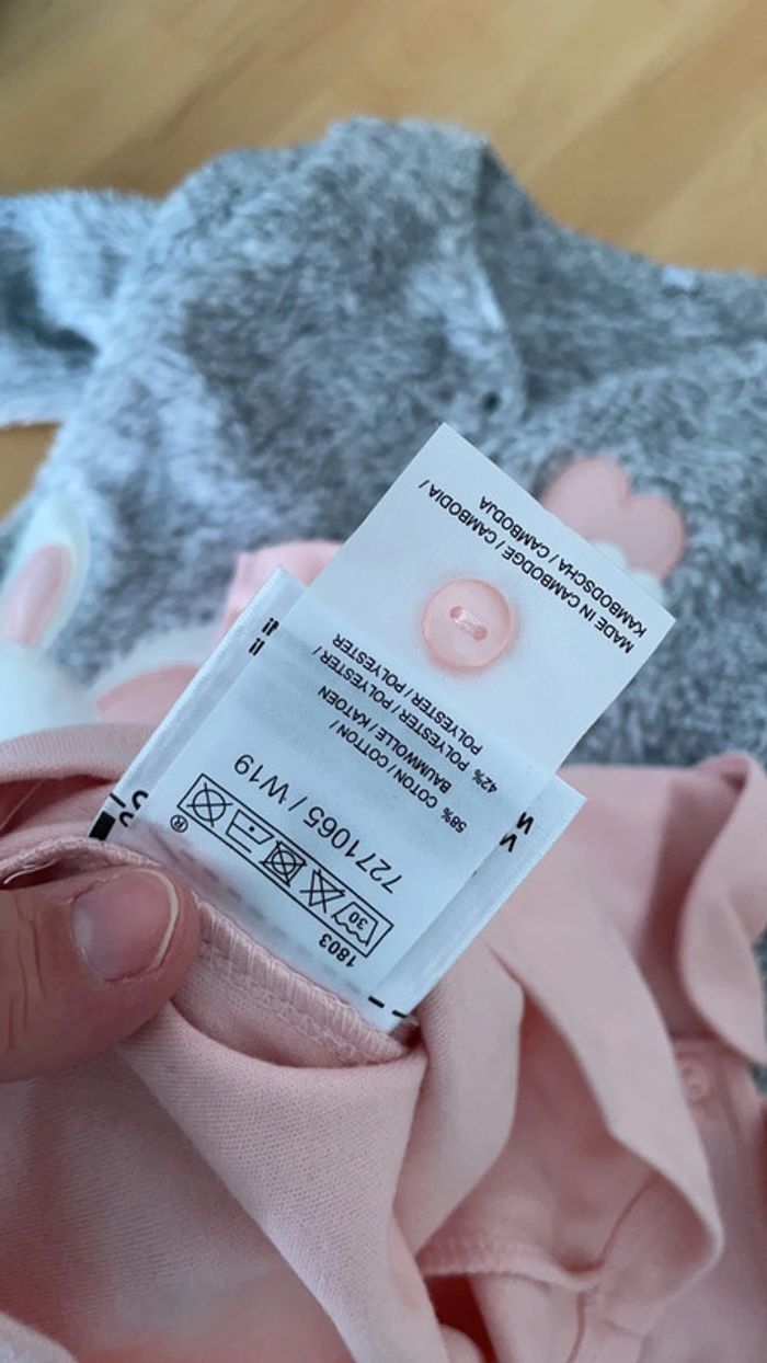 Ensemble bébé 6 mois composé d’un tee short rose boutonné dans le dos avec joli col et d’un gilet gris tout doux assorti 🥰 Tout neuf sans étiquette