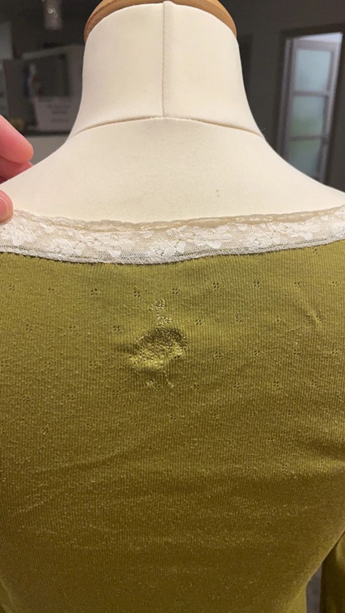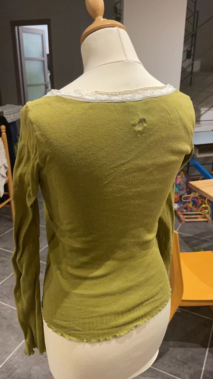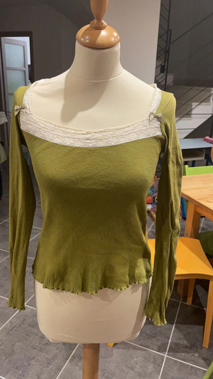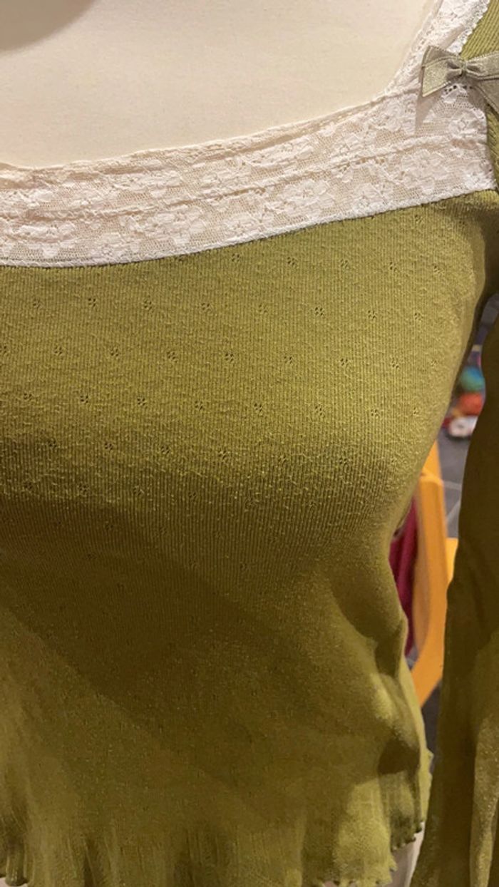 Joli haut one step vert Encolure en dentelle avec petits noeuds Très chic et original Porté quelques fois mais encore en très bon état Étiquette indique 36