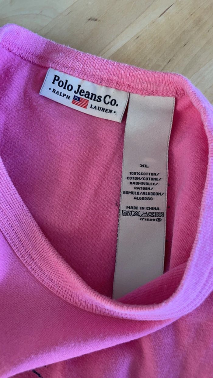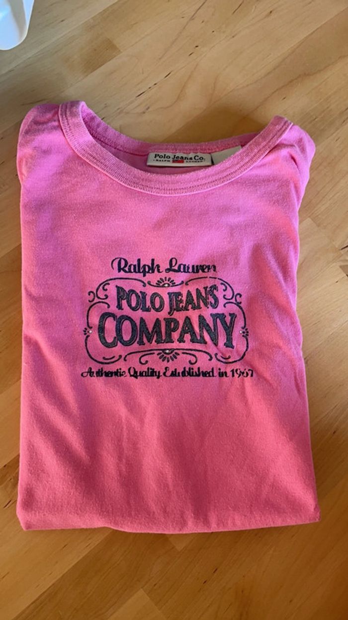 Tee shirt rose Neuf jamais porté Ralph Lauren Polo jeans company Taille xl sur l’étiquette correspond un 40 à mon avis (mon mannequin taille un 38)