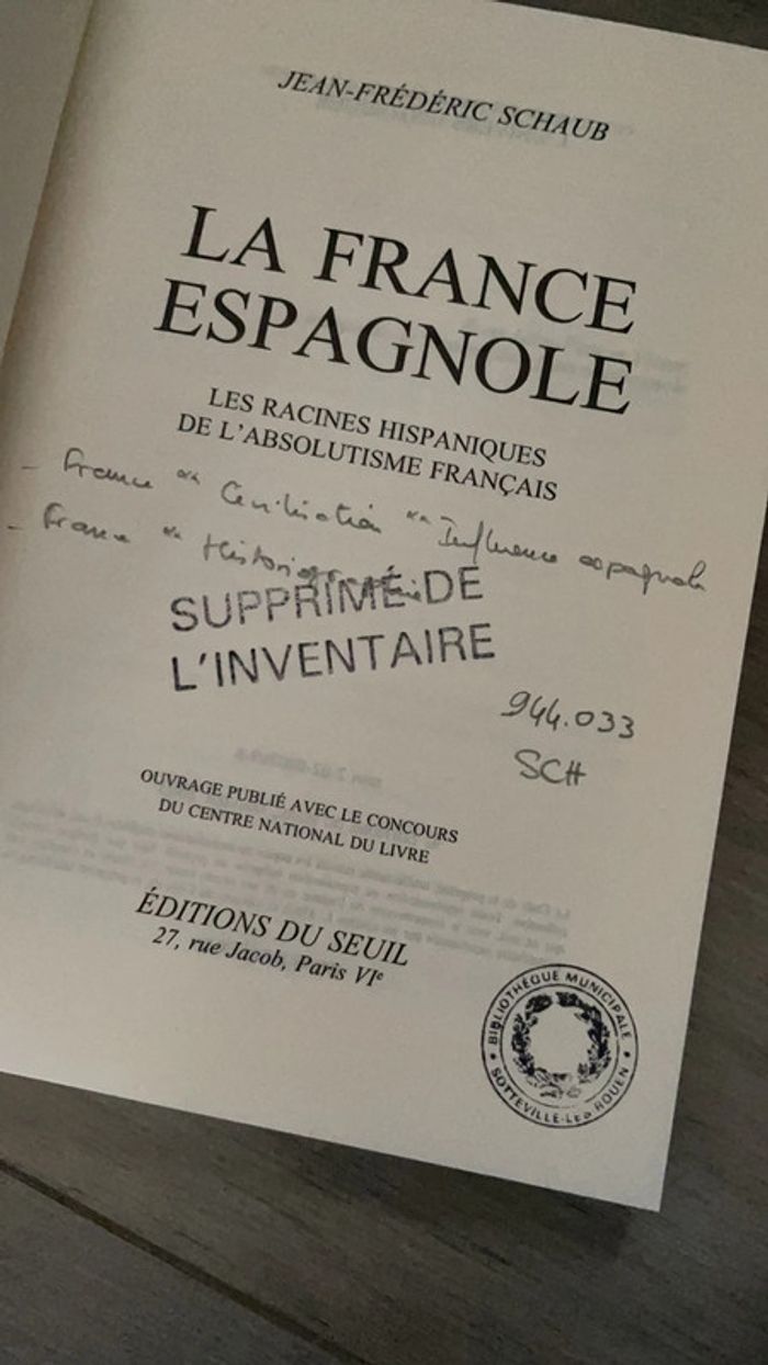Les racines hispaniques de l’absolutisme français Ancien livre de bibliothèque (plastifie et tamponne supprimé de l’inventaire ) Parfait etat