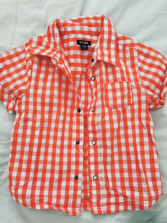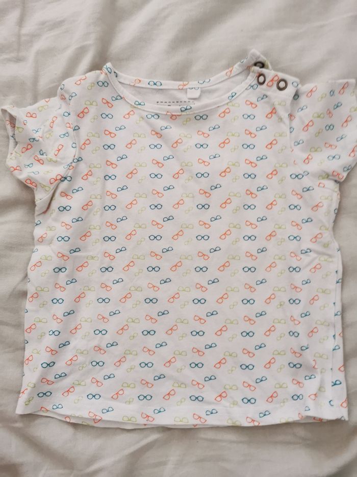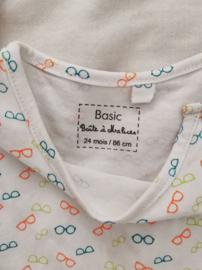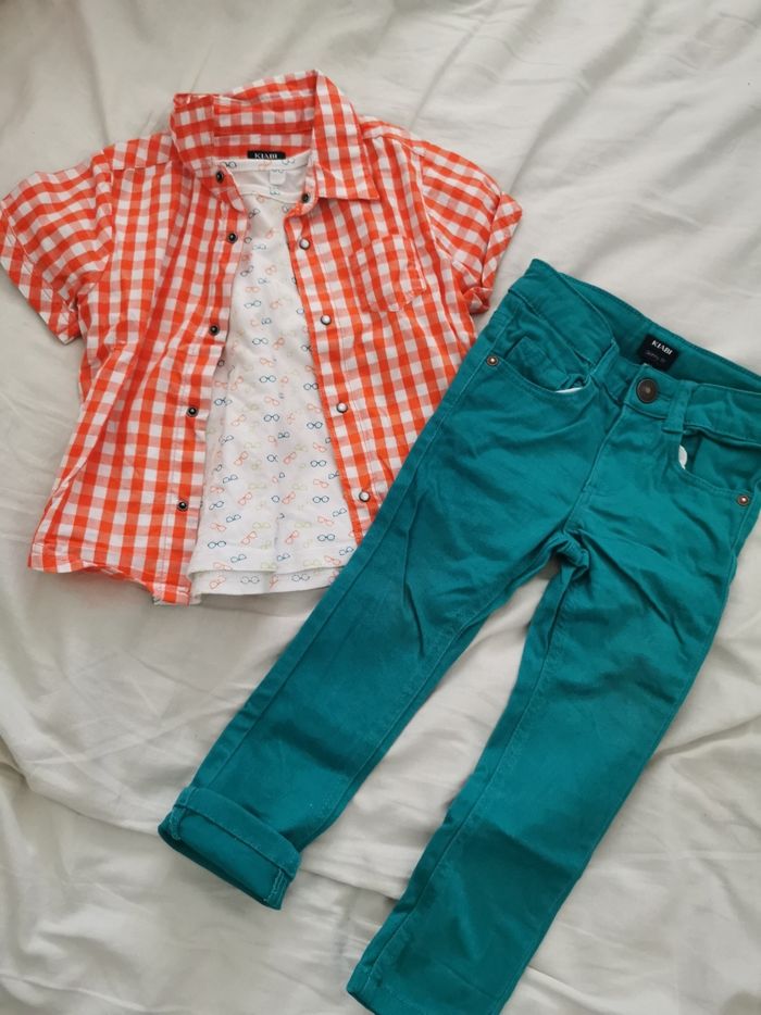 * T-shirt imprimé lunettes (24 mois- boîte à malices) * chemisette à carreaux orange ( 18 mois - kiabi) * skinny bleu canard (kiabi-2 ans)