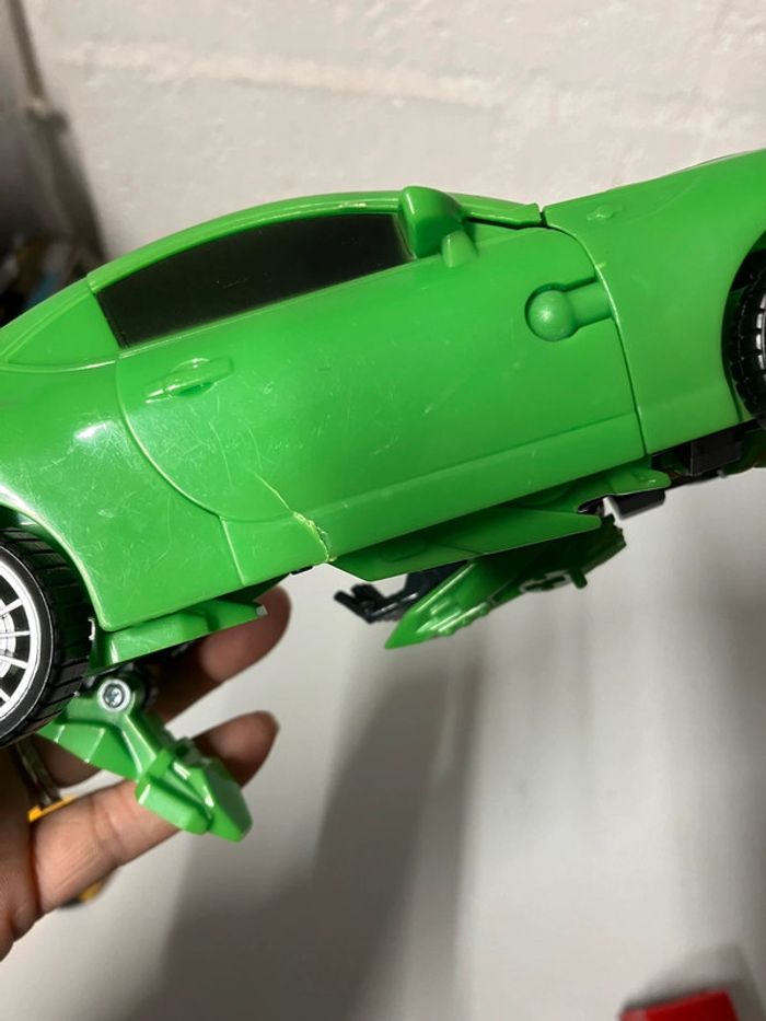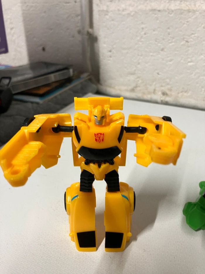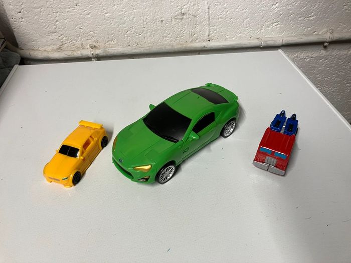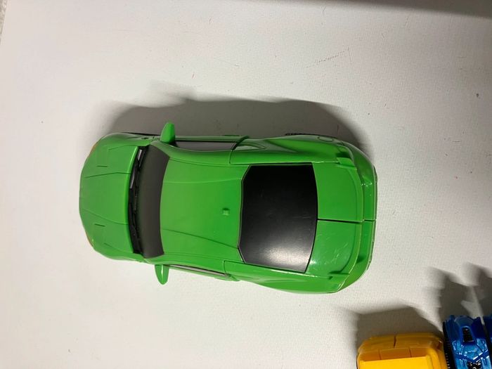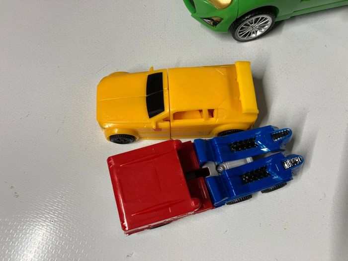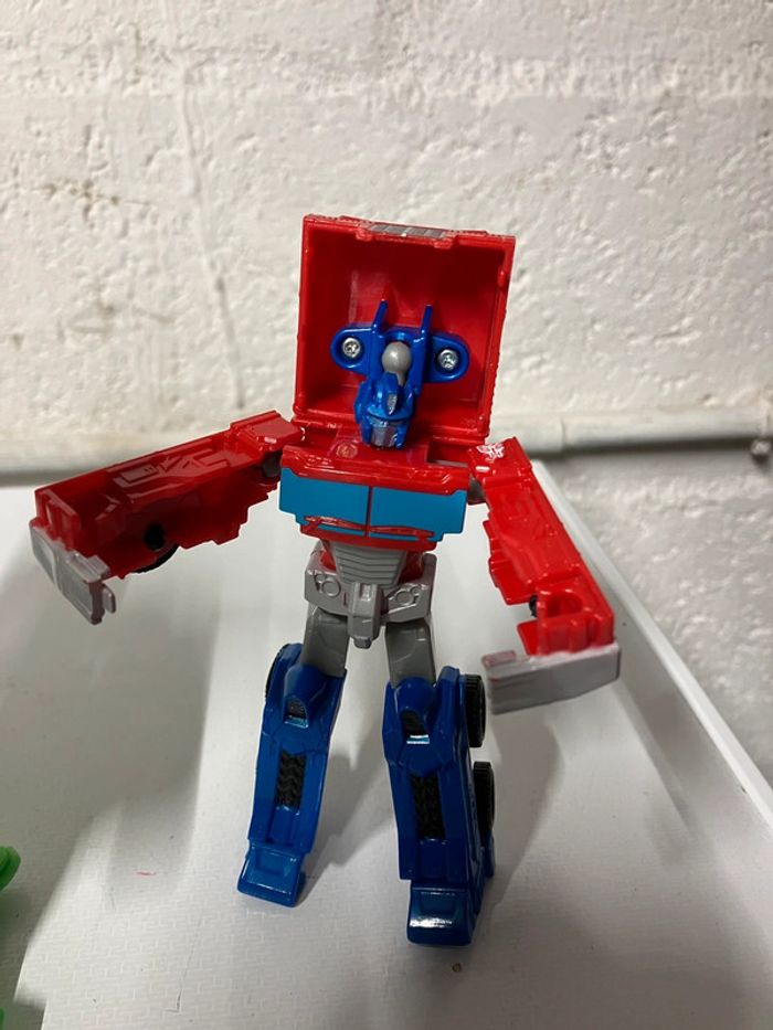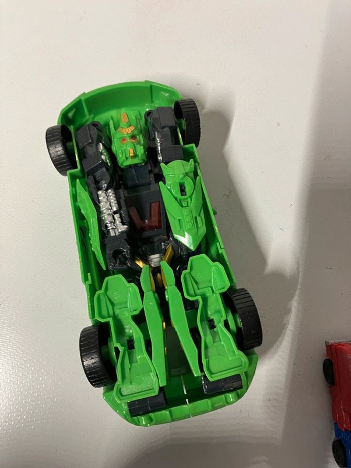 Lot de véhicules qui se transforme. Les Deux petits transformers (4x9,5cm)le grand indéterminé voiture verte (8x19,5cm)et présente une fissure. Pas d’envoi vinted go. Merci #ttl60_jeux