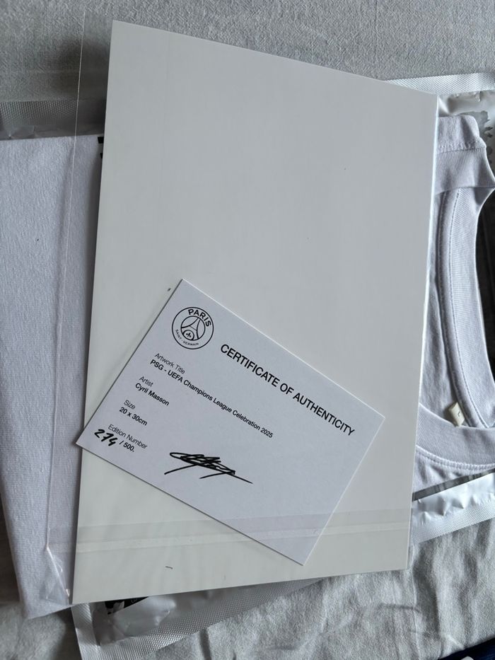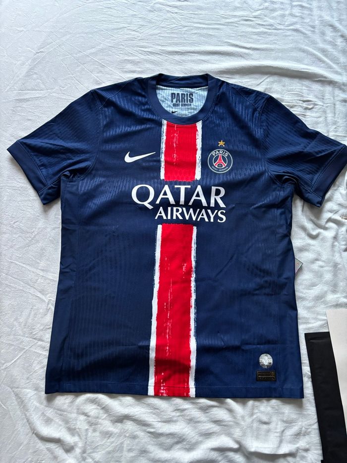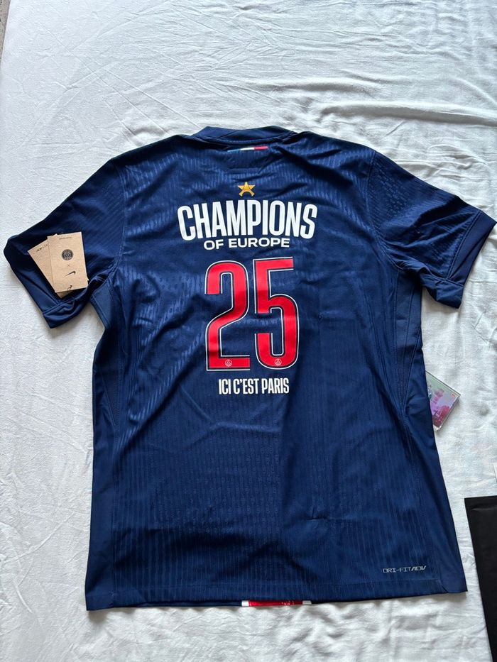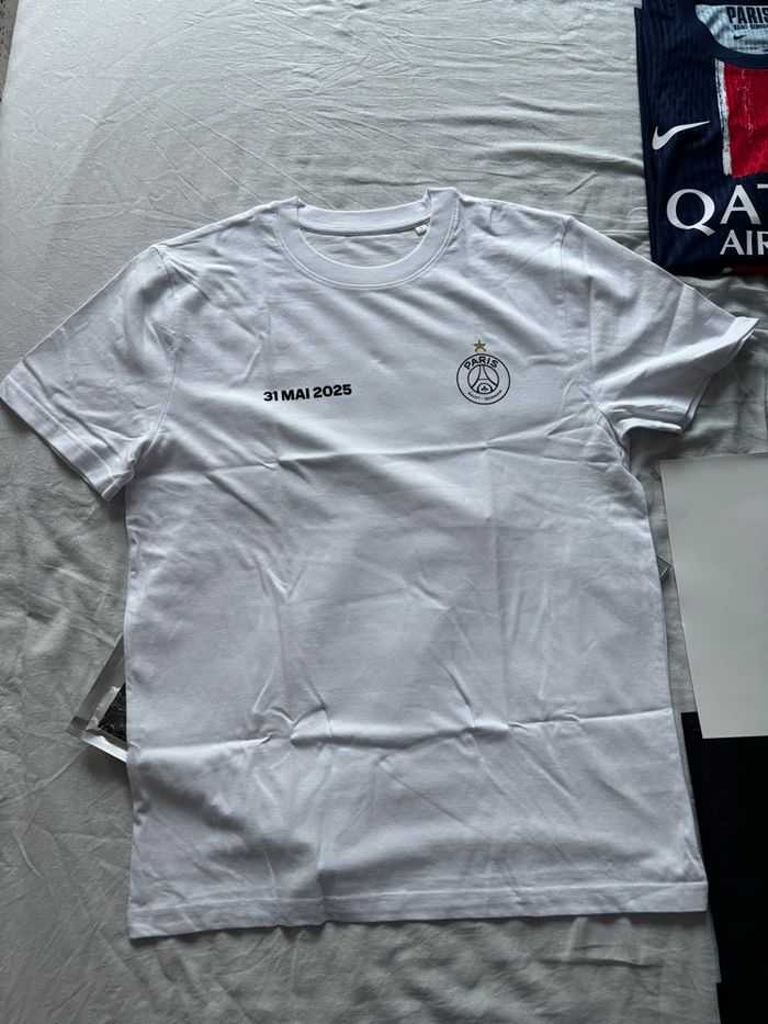 Coffret collector officiel PSG – Final Munich 31 mai 2025 célébrant la 1ère victoire du Paris Saint-Germain en Ligue des Champions. Édition ultra-limitée, numérotée et certifiée authentique. Contient : • 1 maillot match PSG NIKE 24/25 collector avec le flocage champion et une étoile. Maillot numéroté ! (taille L) • 1 t-shirt commémoratif “31 mai 2025” disponible uniquement dans ce pack. • 1 tirage photo devant l’Arc de Triomphe signé par le photographe. • 1 carte topps en tirage limité ✅ Neuf, jamais porté, sous emballage. ✅ Produit introuvable en boutique, véritable objet de collection. Idéal pour collectionneurs et fans du PSG. Envoi rapide et soigné. Beaucoup plus de photo dispo sur demande.