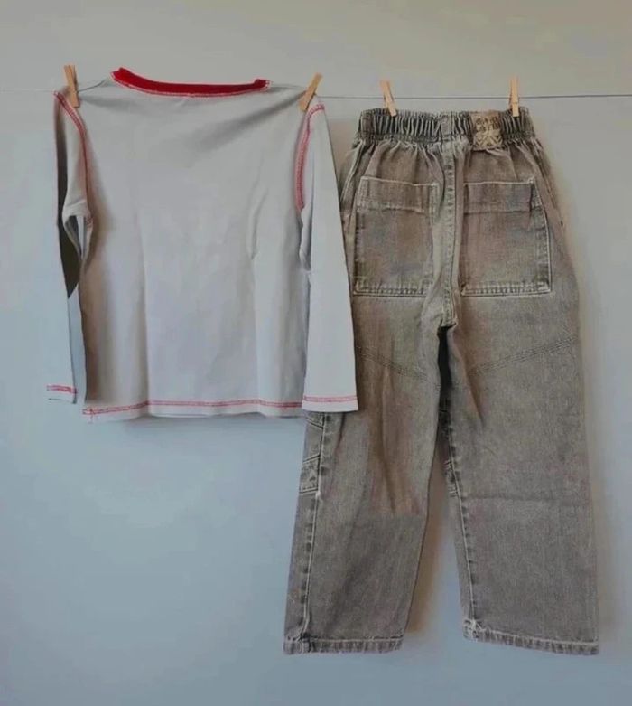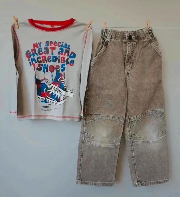 Ensemble 2 pièces Taille 6 ans - Tee-Shirt Manche Longue Marque Tissaïa Très bon état - Pantalon en Jean Taille élastique Marque Kiabi Très bon état 4€ le lot Pleins d'autres vêtements 6 ans en cliquant sur ce lien : #dressingcindysixans