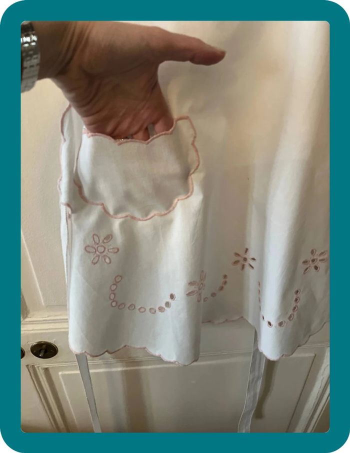 Tablier coton blanc brodé rose avec poche - Vintage - photo numéro 4
