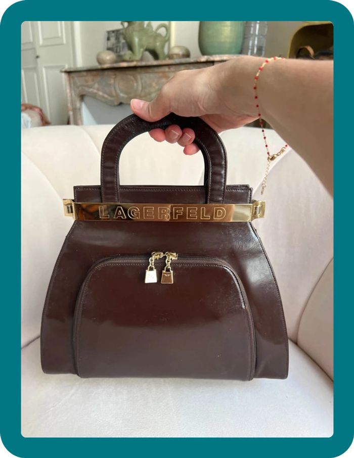 Rare Sac porté main années 80-90 vintage marron - Karl Lagerfeld - photo numéro 1