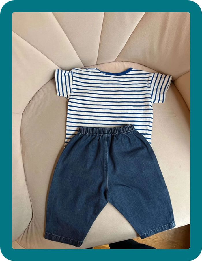Ensemble t-shirt marin et jean sarouel 12 mois - Petit Bateau - photo numéro 7