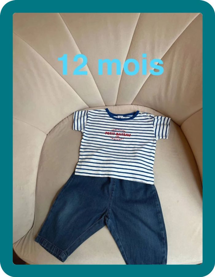 Ensemble t-shirt marin et jean sarouel 12 mois - Petit Bateau - photo numéro 1
