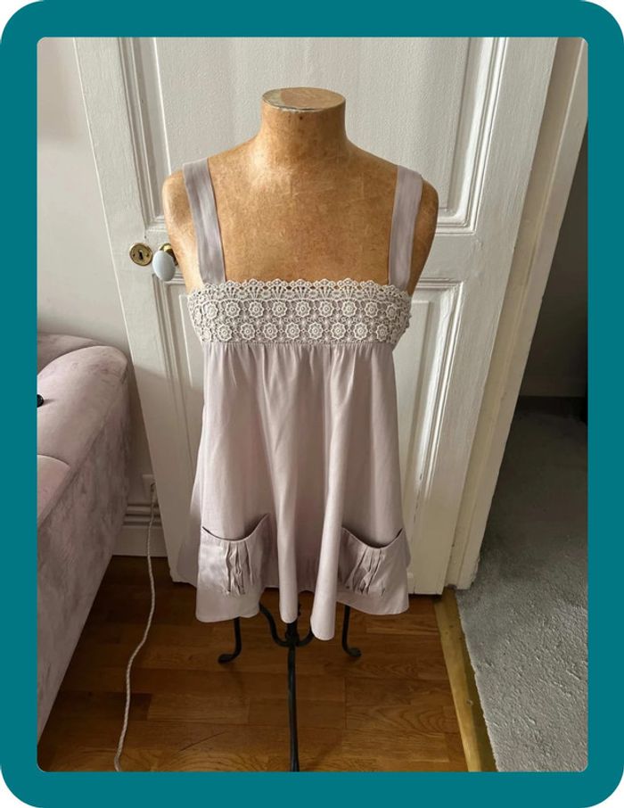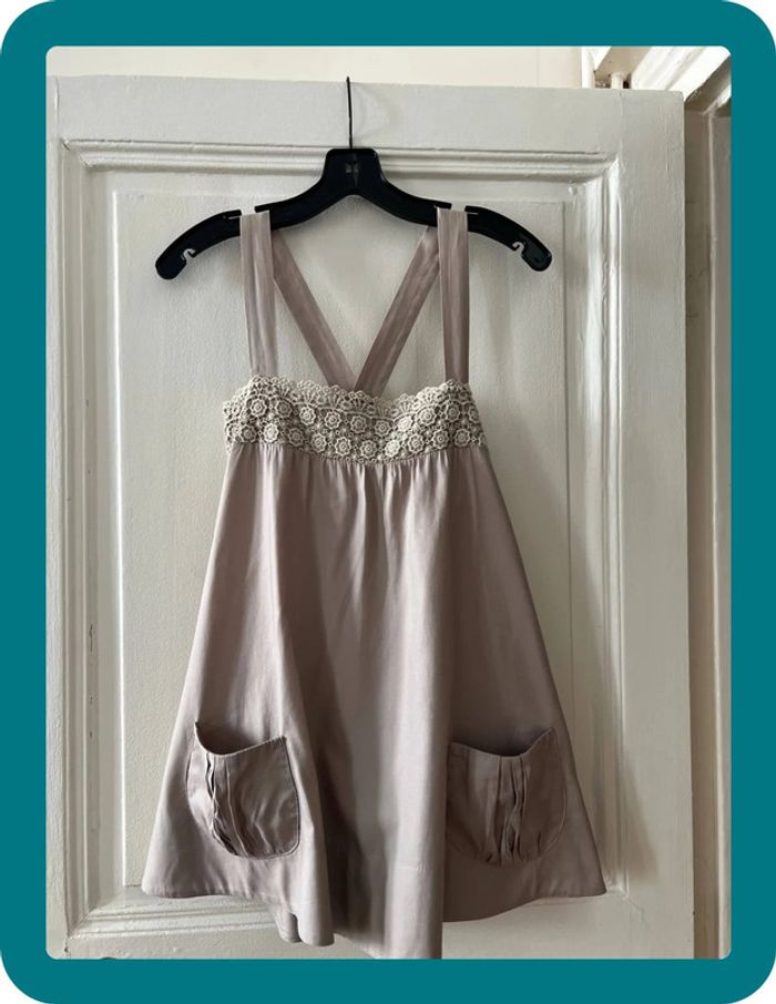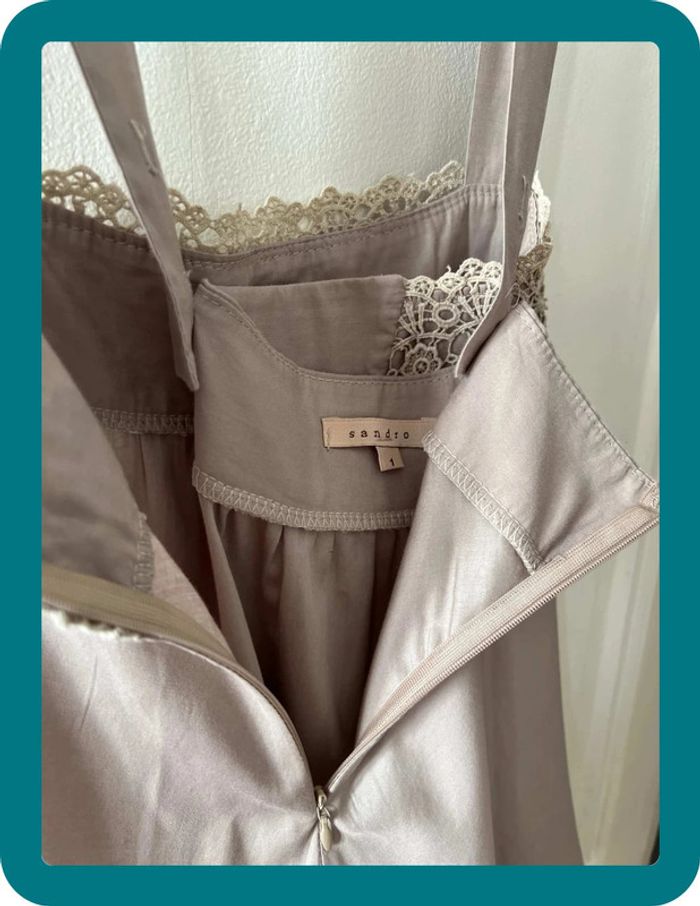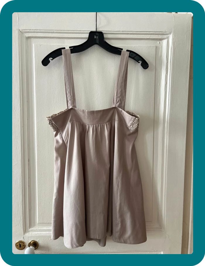 Peu porté mais très ancien, 2007 Micro décoloration photo 4 Les bretelles sont réglables 2 boutons et peuvent être croisées dans le dos. Belle qualité de coton (doublé) Longueur max 75cm Largeur aisselles 42cm #vetementsfemme36_aria2014 #vetementsfemme38_aria2014 #sandro #sandrovintage #topbeigefemme #toptrapèze #guipure