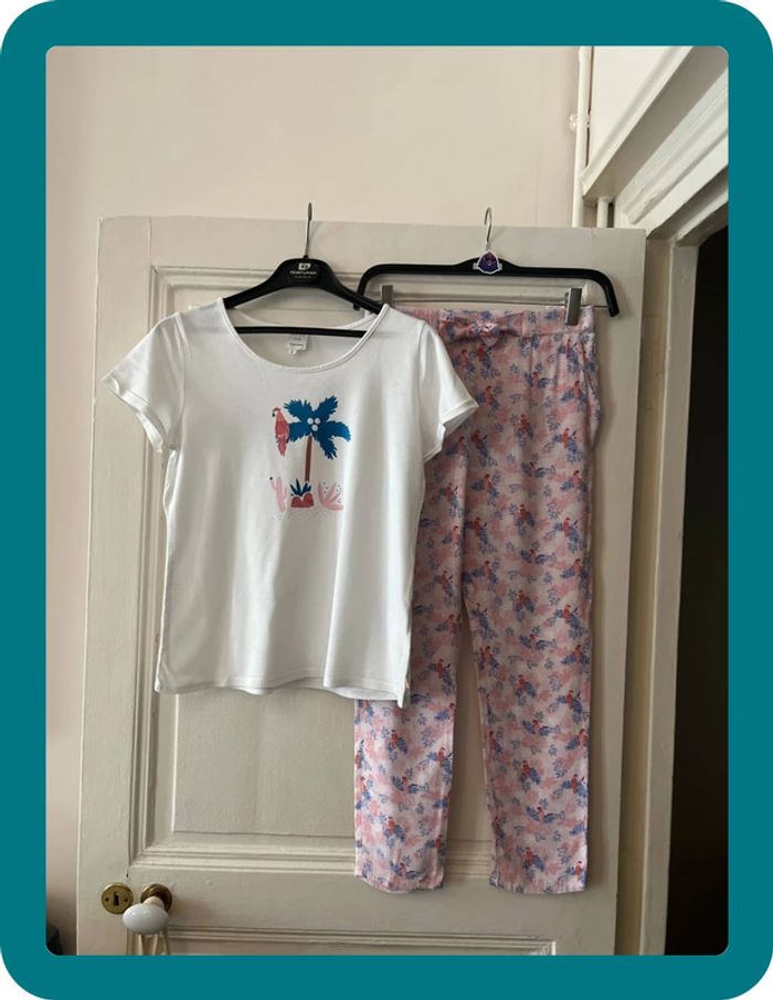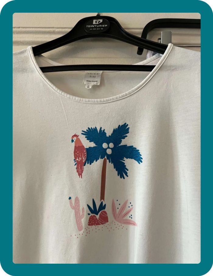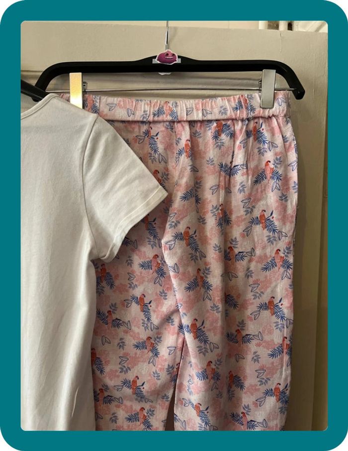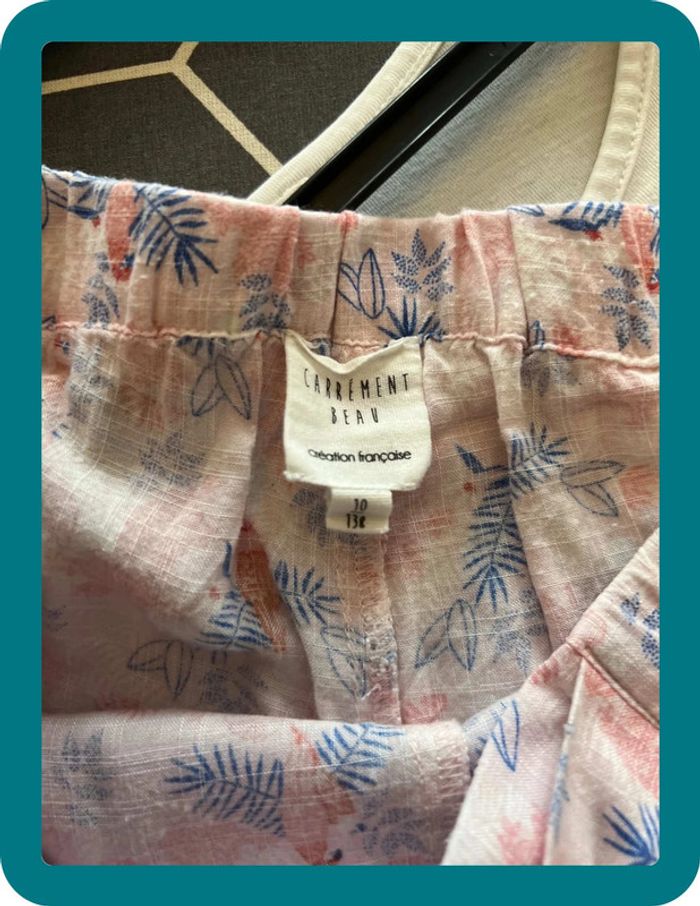 Pantalon en très bon état. Le t-shirt qui va avec est en 12 ans car ma fille ne voulait pas que son buste se voit. Le t-shirt est en bon état car plus porté. #vetementsfille10ans_aria2014 #carrementbeau_aria2014 #ensembleétéfille10ans #fille10ans #perroquet #casualfille10ans