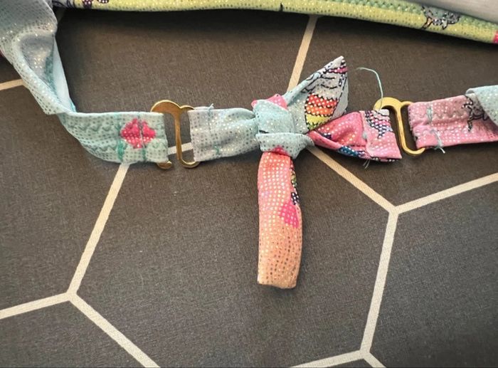 En excellent état, les volants peuvent se rentrer à l'intérieur, double système pour le haut (sans attache ou avec), rembourrage amovible pour le haut, système d'élargissement au niveau du dos < voir photos