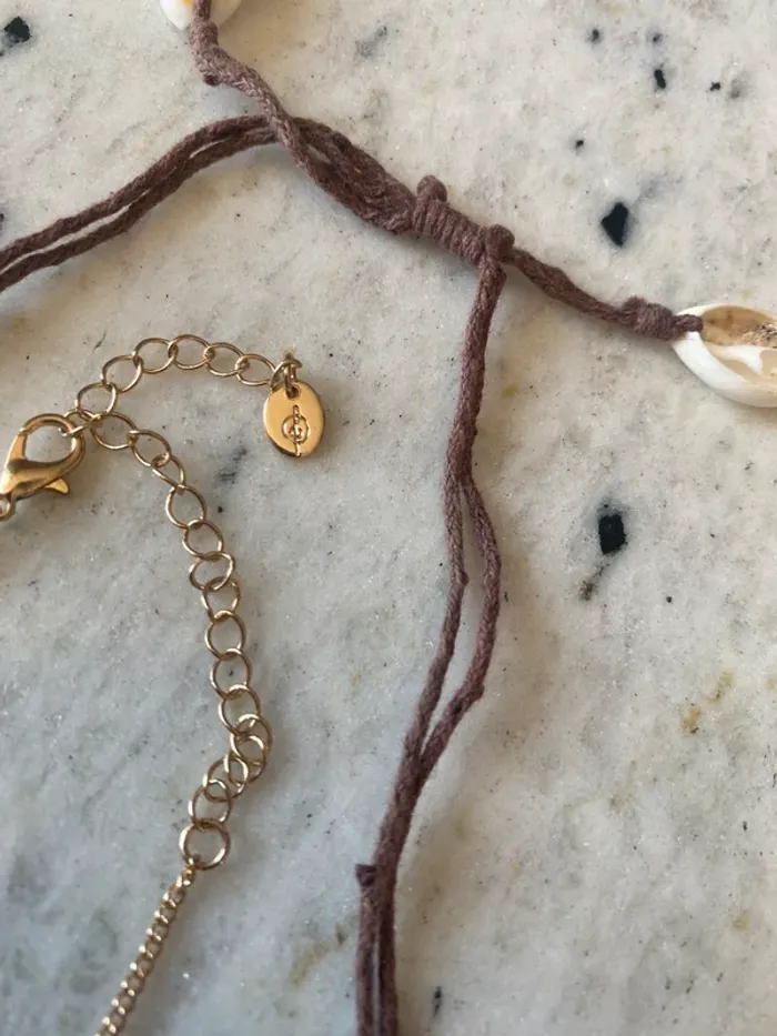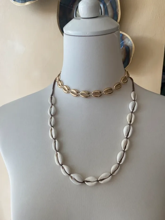 Ensemble bijoux coquillages 1 raz de cou coquillages dorés en métal 1 collier ajustable 1 bracelet ajustable