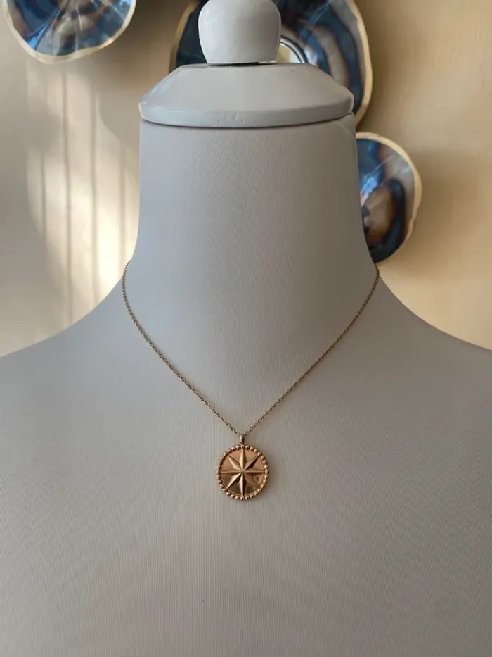 Collier doré pendentif étoile S.Steel Chaînette fine Pendentif rond motif étoile