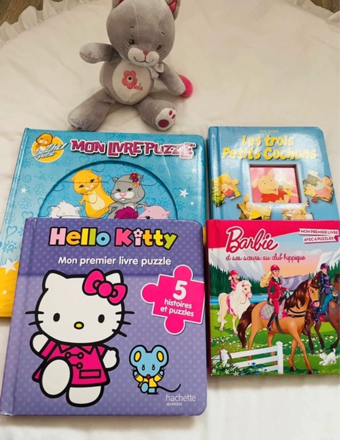 Livre puzzle 4 puzzle livres barbie les trois petits cochons hello kitty  Zhuzhu pets