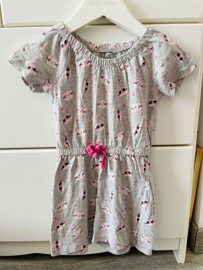 Combinaison short bébé fille six mois neuf mois 74 cm grise et blanche petit chat