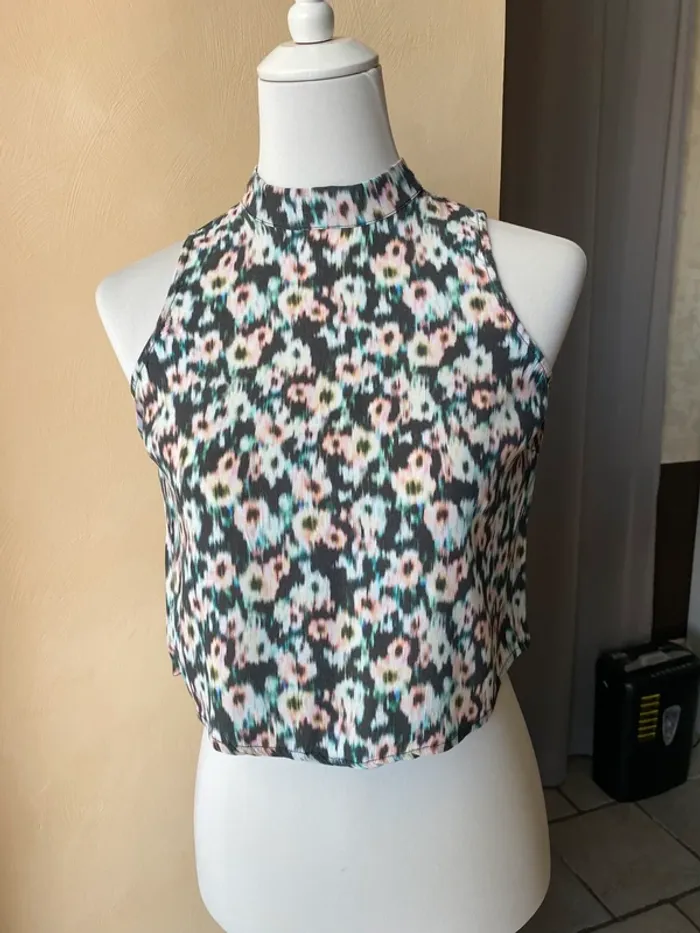 Crop top Bershka S Col montant, sans manches Fendu au dos Largeur épaules 26 Largeur poitrine 42,5 Longueur 42