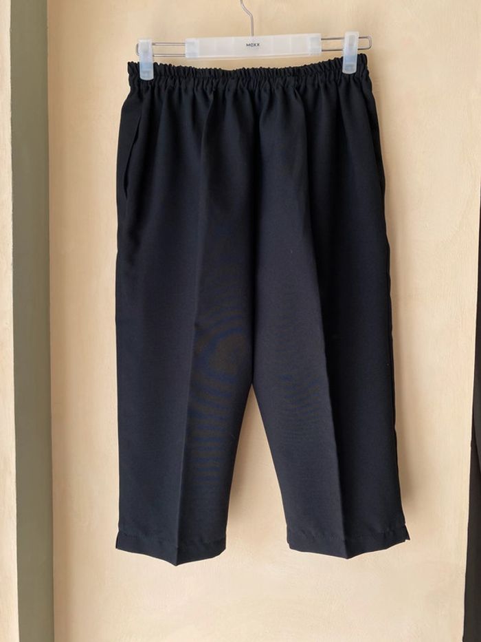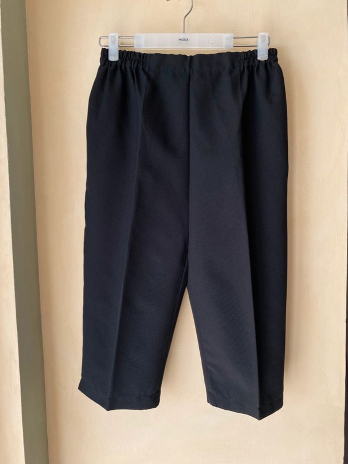 Pantacourt noir T4 Taille élastique Coupe à pince Fabriqué en France 🇫🇷 Largeur taille 35 Longueur total 73 Longueur jambe 44 Hauteur taille 30 Largeur cuisse 32 Largeur en bas 20
