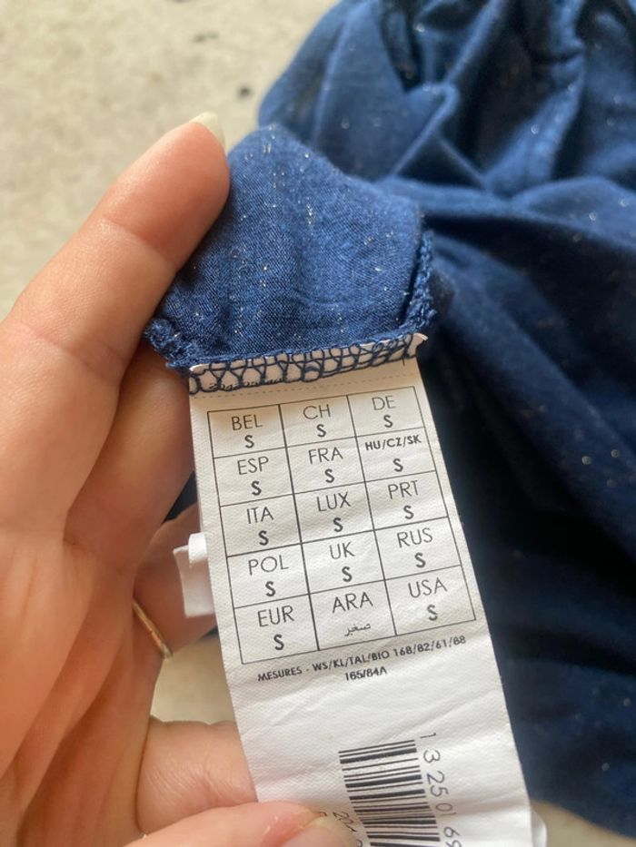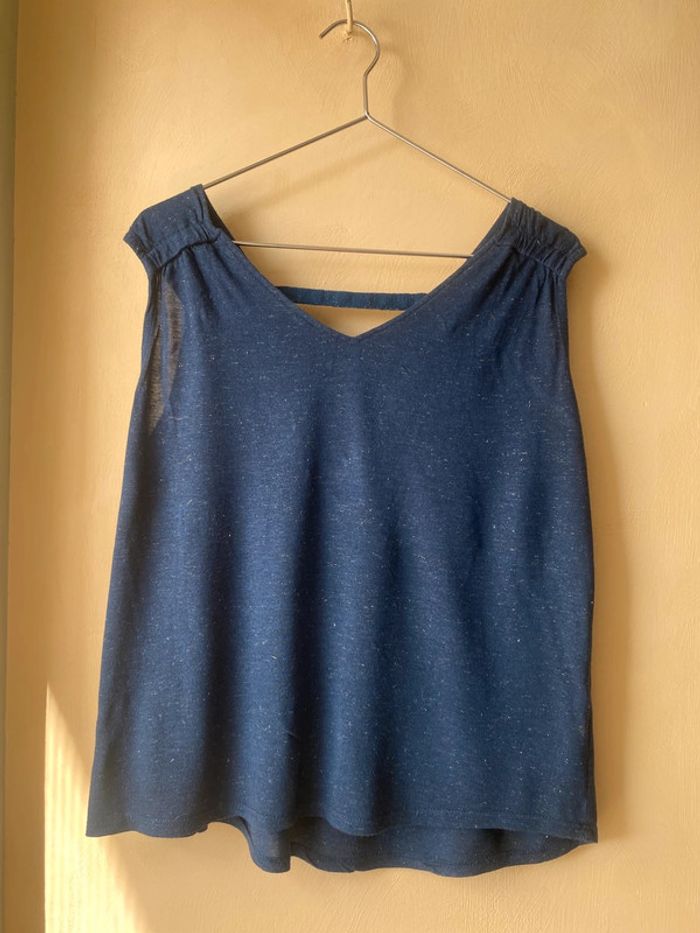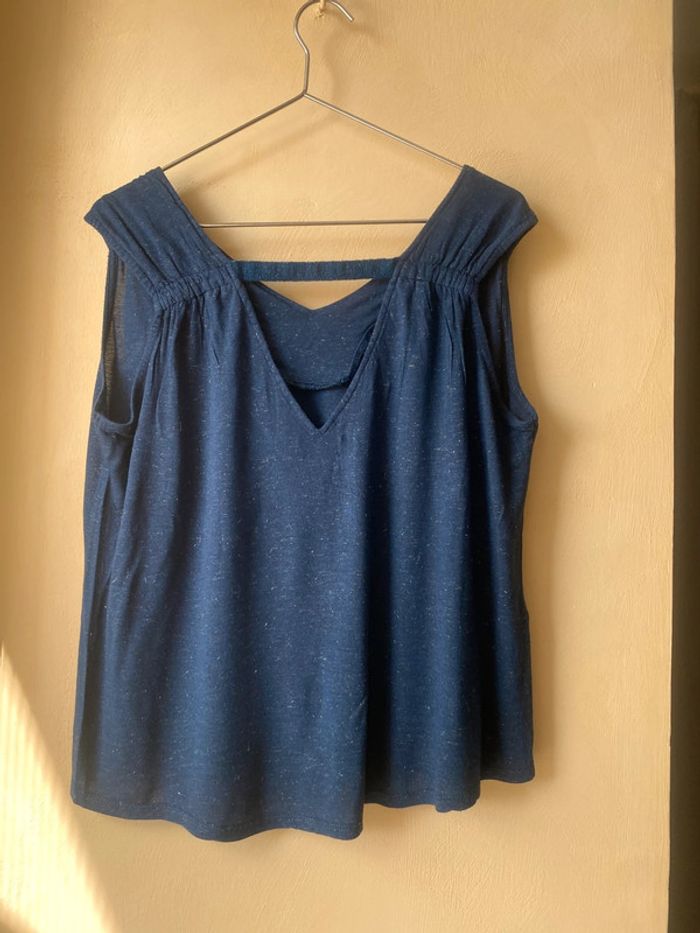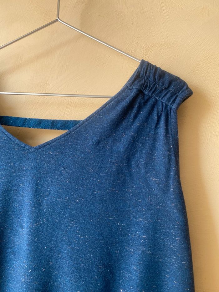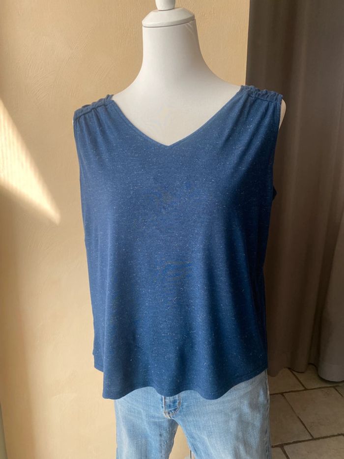 Débardeur marine irisée Promod S Col V Dos V Fils métallique Largeur épaules 40 Largeur poitrine 54 Longueur 60