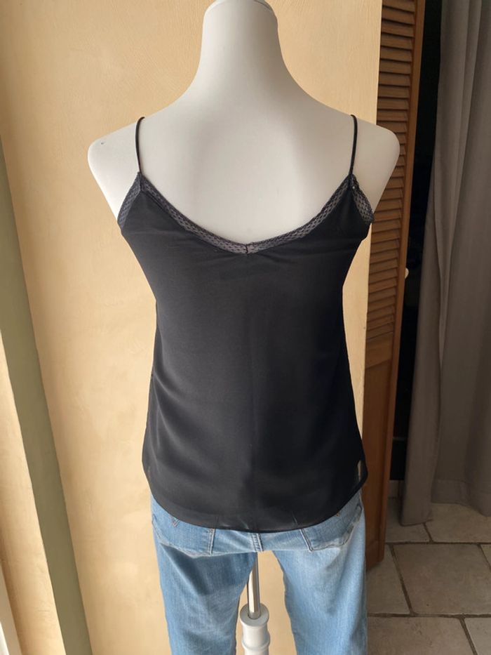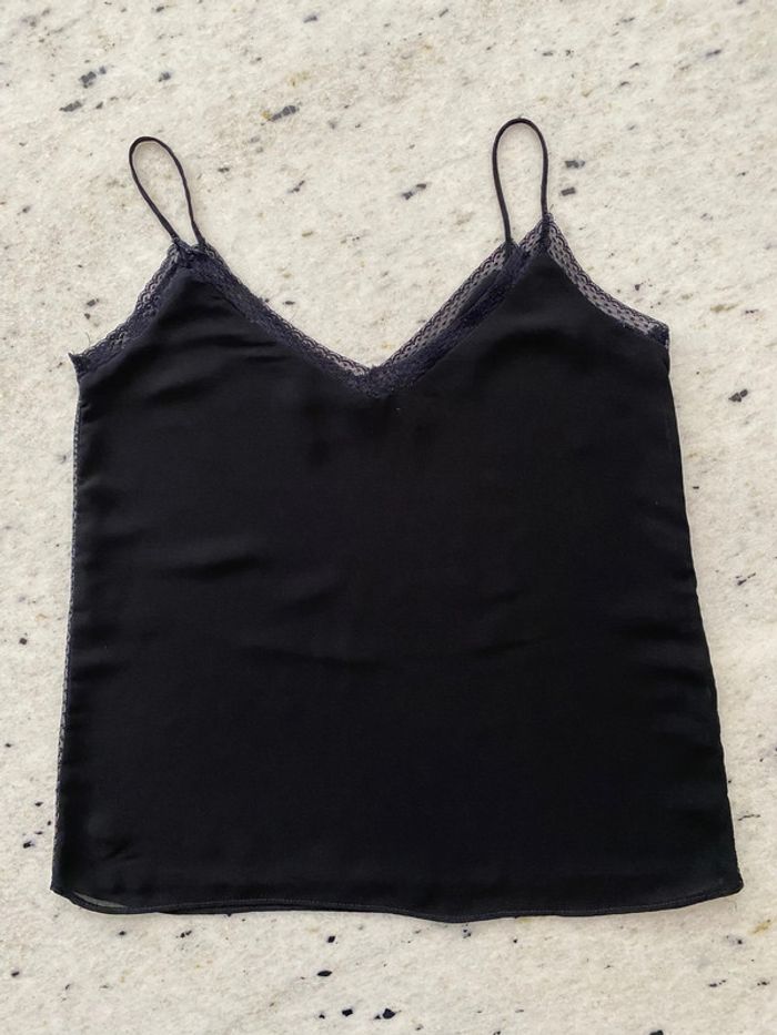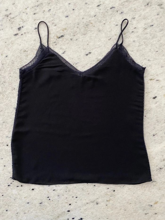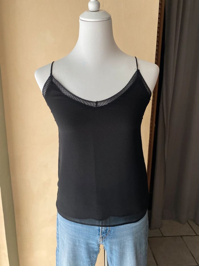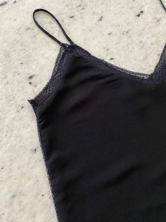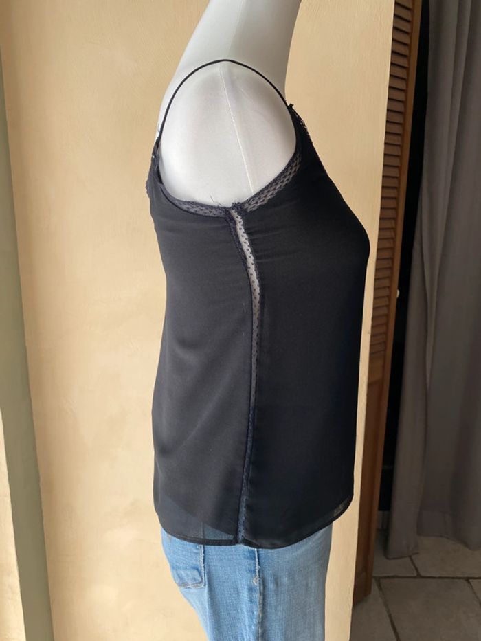 Caraco noir Zara Basic XS Bordure et côté dentelle Bretelles spaghettis Voile doublé Largeur épaules 26 Largeur poitrine 40 Longueur 53