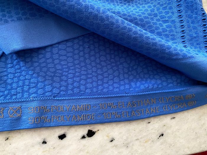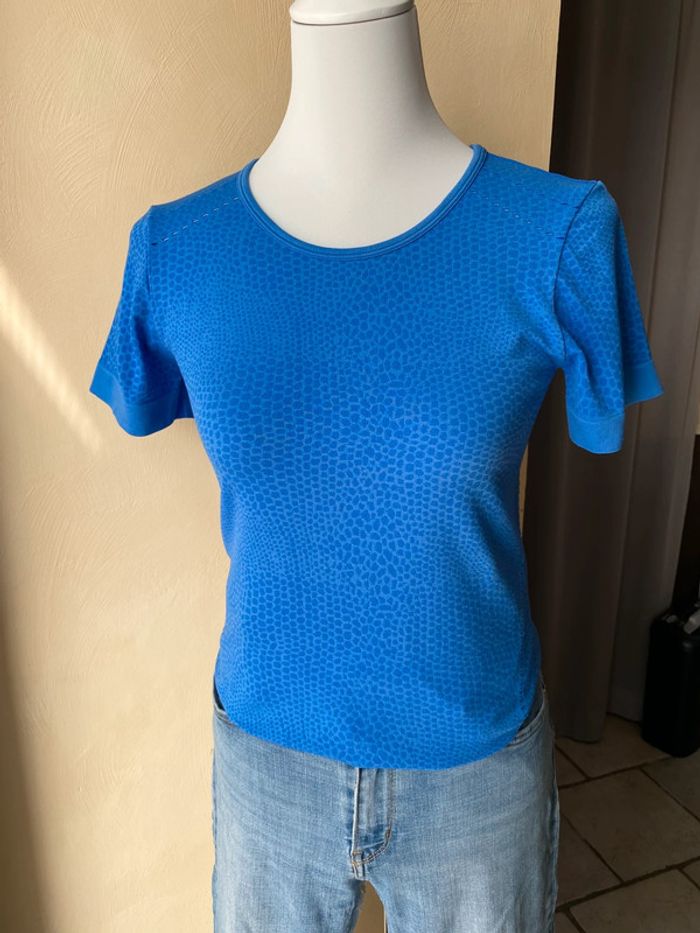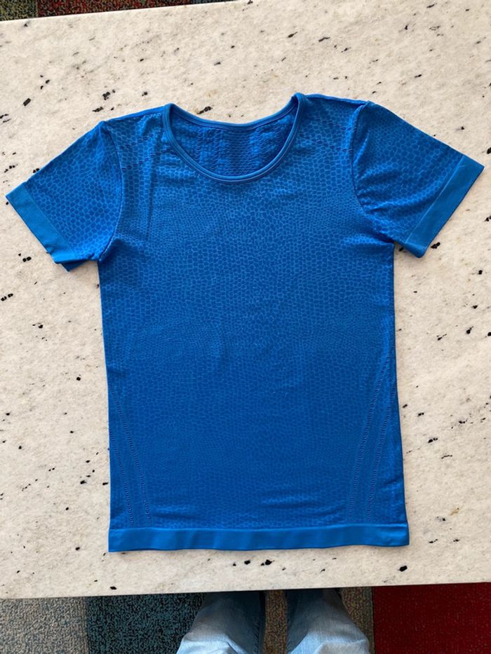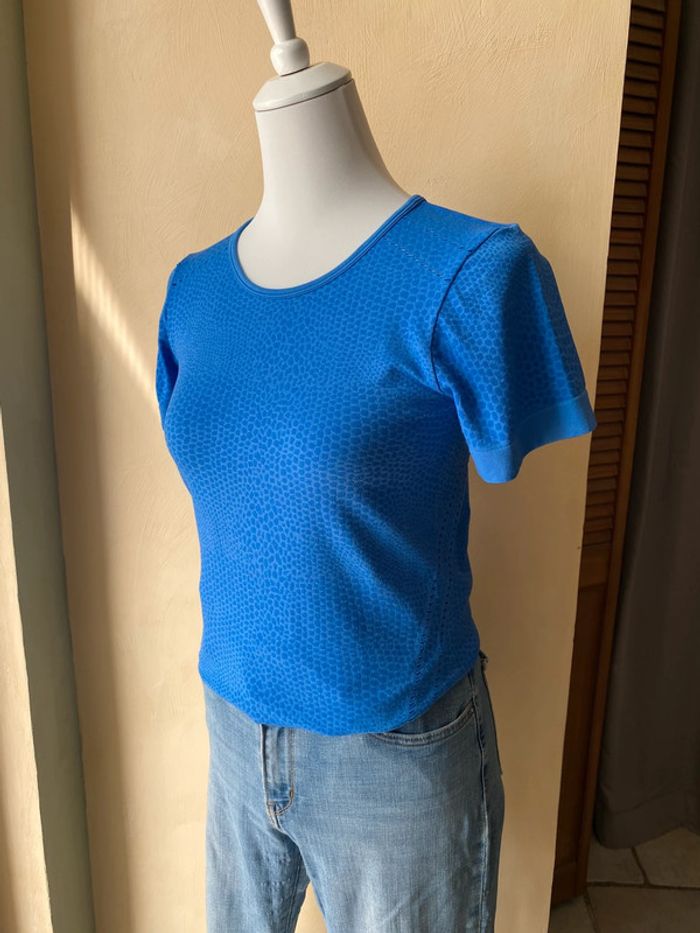 T-shirt sport bleu Crivit M Moulant Ajouré par endroit Manches courtes Largeur épaule 34 Largeur poitrine 40 Longueur dos 58