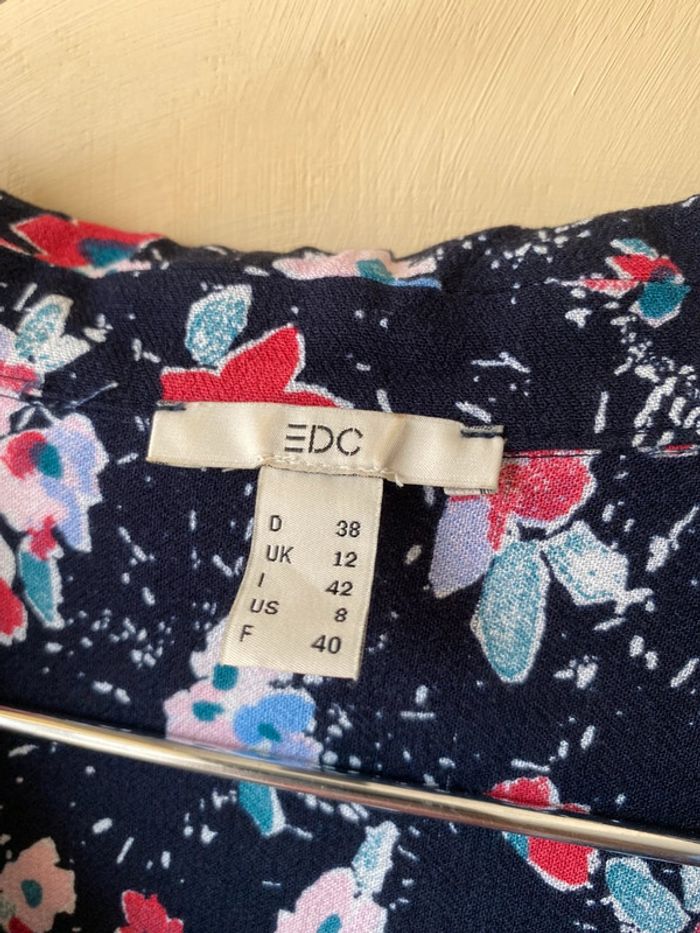 Robe à fleurs marine EDC 40 Boutonnée devant en partie haute Zip sur le côté Largeur épaules 39,5 Largeur poitrine 49 Largeur taille 43 Longueur totale 92