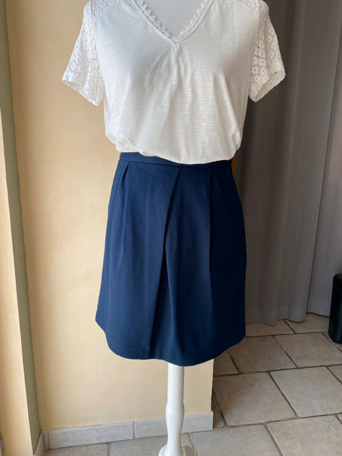 Jupe marine Promod 38 Tissu épais Largeur taille 38,5 Longueur 46