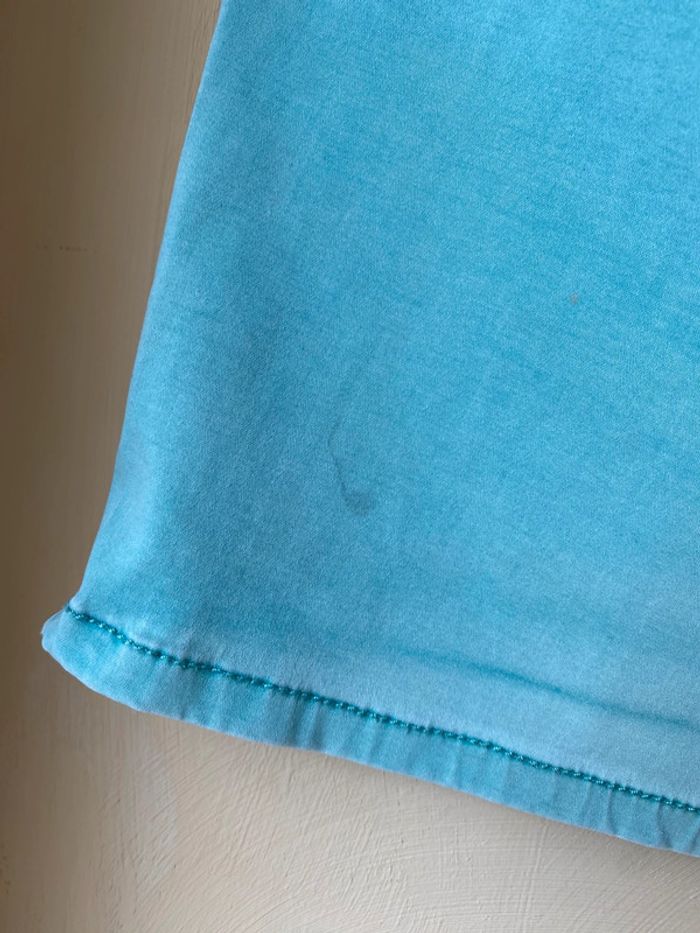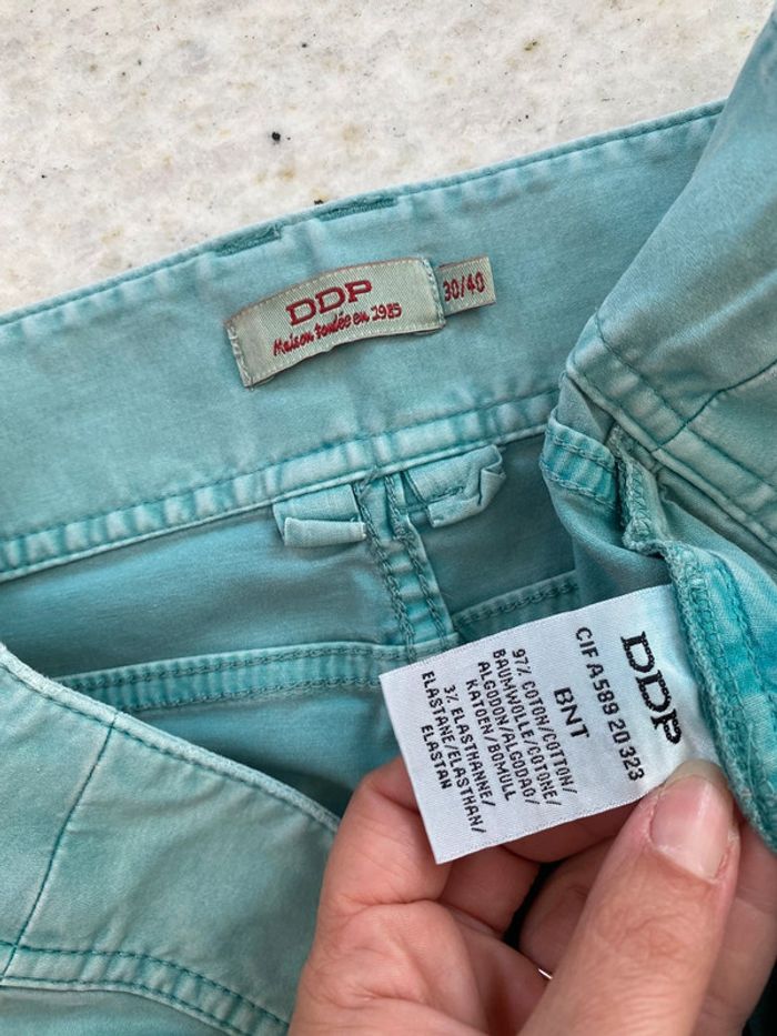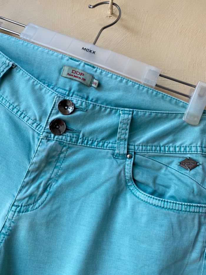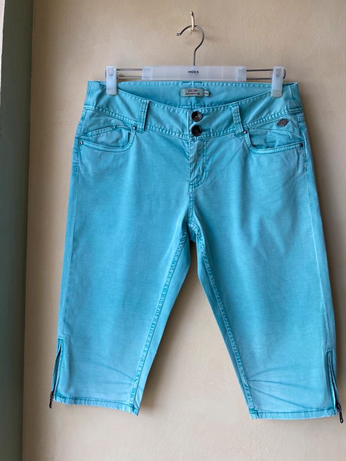 Corsaire turquoise DDP 40 Largeur taille 40 Largeur hanche 48 Hauteur taille 22,5 Longueur totale 61 Longueur jambe 38,5 Largeur cuisse 28,5 Largeur genou 17 Légère tache derrière en bas