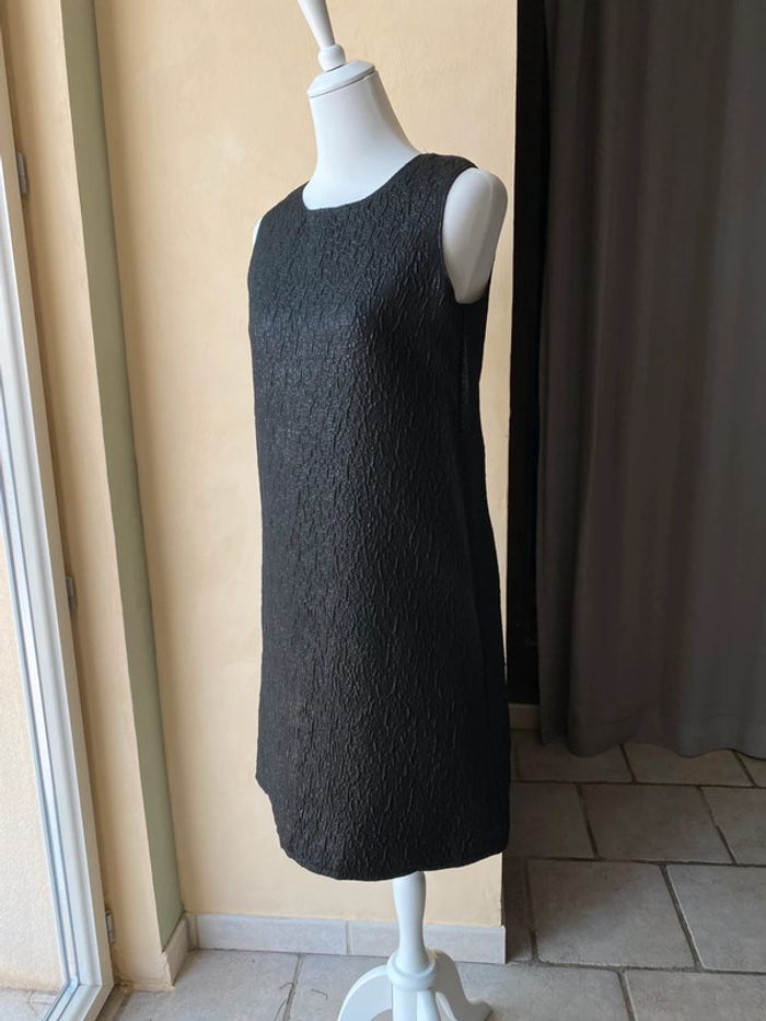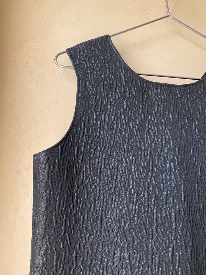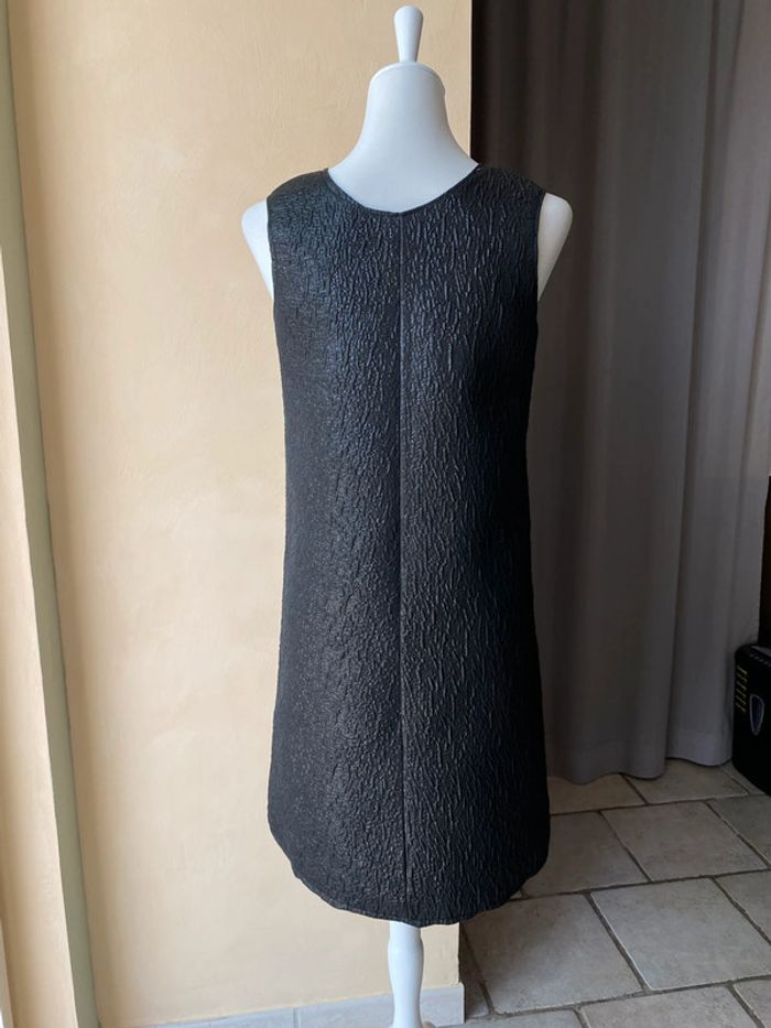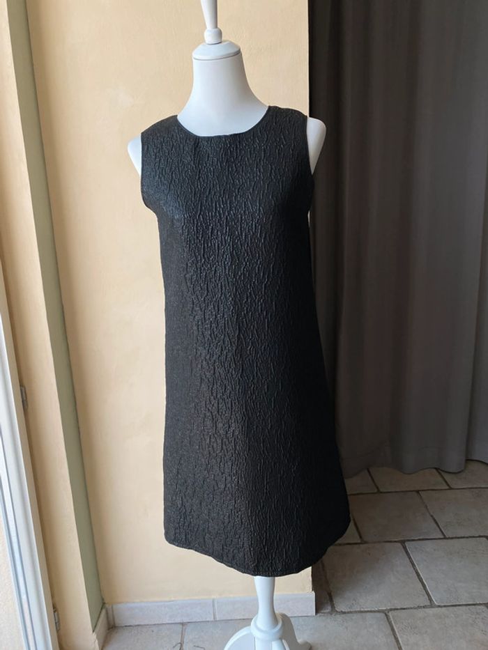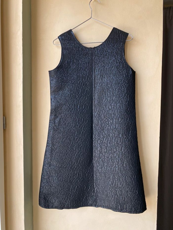 Robe trapèze noir irisée M Tissu épais gaufré brillant irisé Largeur épaules 34 Largeur poitrine 45 Largeur en bas 60 Longueur totale 88 Fait main