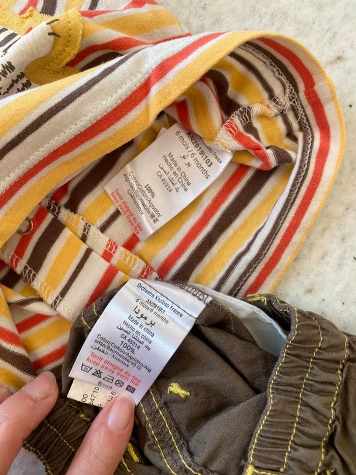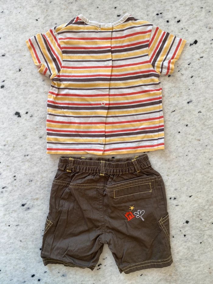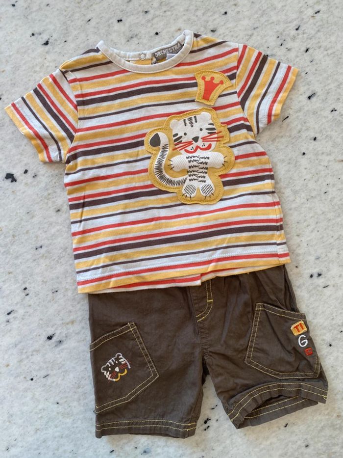Ensemble tigre Orchestra 6mois Short marron + t-shirt rayé ouverture pression au dos. Tbe