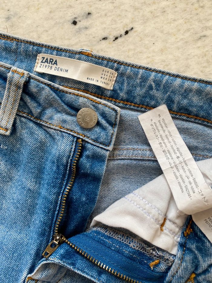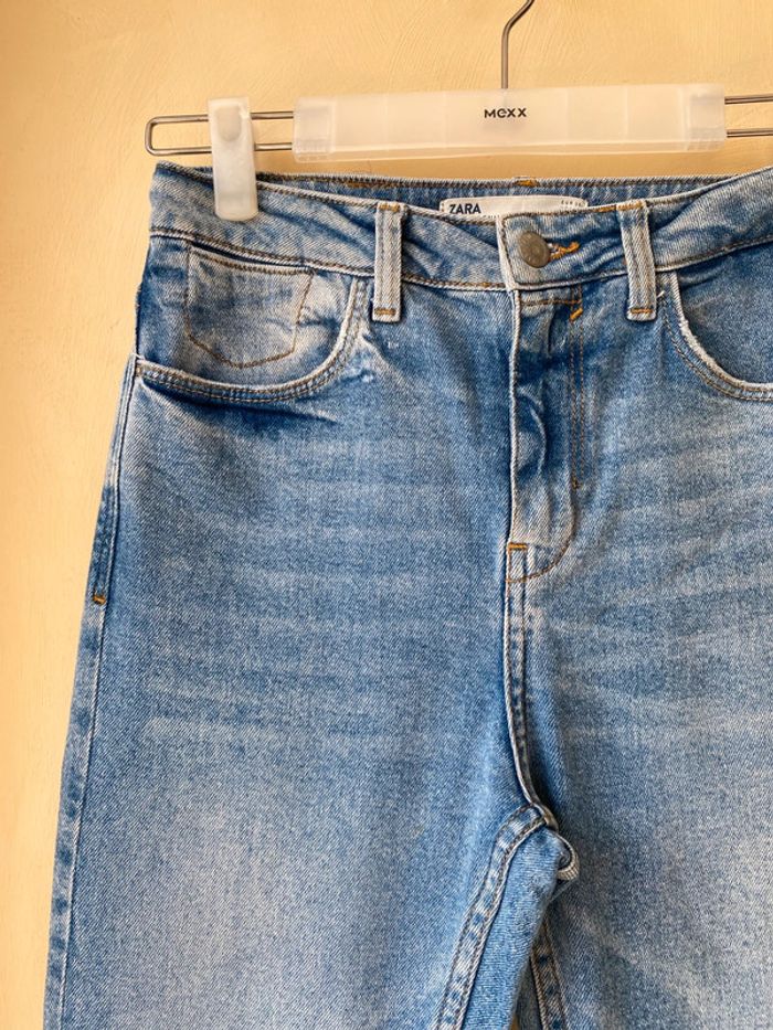 Jean slim taille haute Zara 36 Bleu clair Zara basic denim dépt Largeur taille 34 Largeur hanche 42 Hauteur taille 28 Longueur totale 97 Longueur jambe 69 Largeur cuisse 25 Largeur cheville 13,5