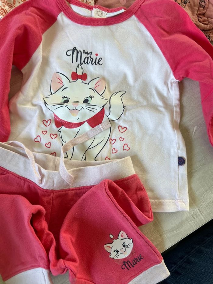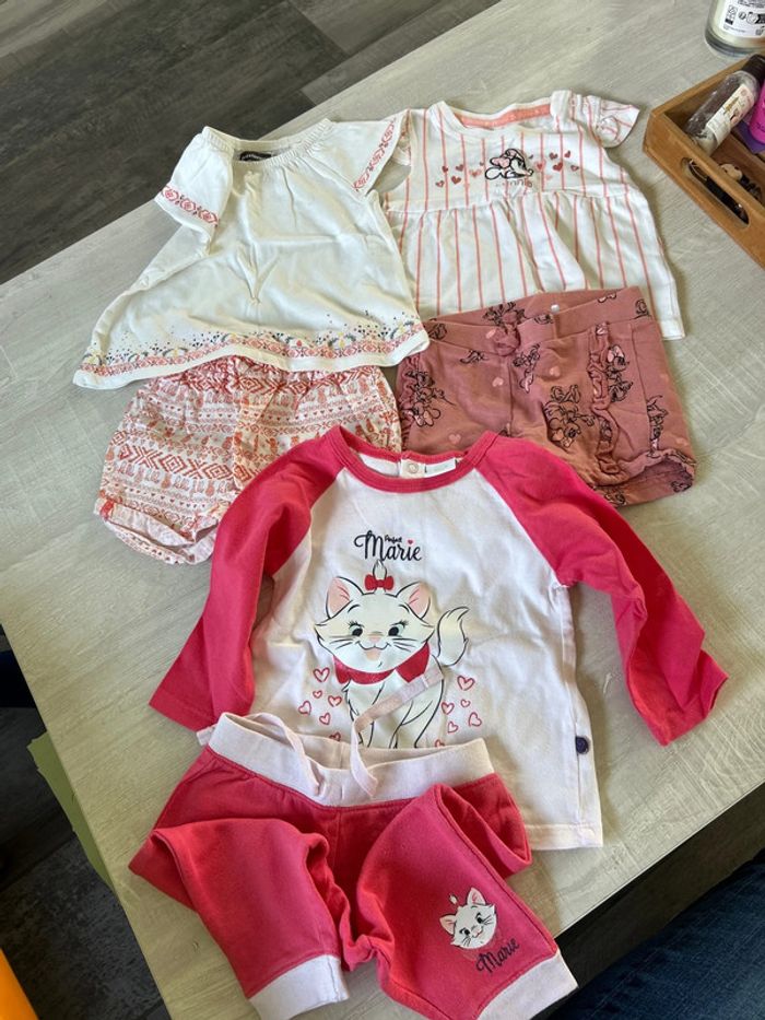 Un survêtement léger Disney baby Marie 3-6 mois. Un ensemble maillot+ short 0-3 mois mais 62cm primark Un ensemble in extenso 3-6 mois 68cm