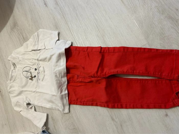 Un jean rouge et un maillot manche longue TAO 9 mois