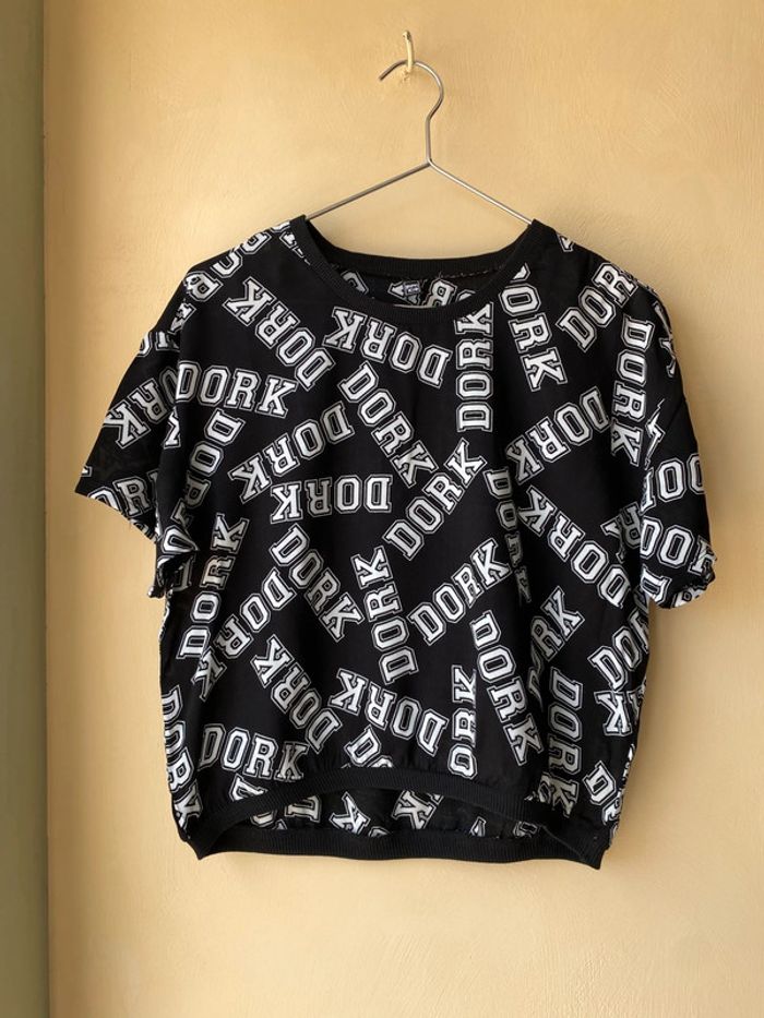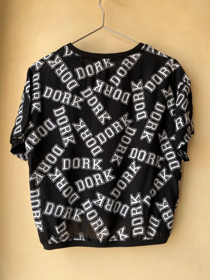 T-shirt léger noir et blanc Pimkie M Inscription Dork Largeur épaules 46 Largeur poitrine 51 Longueur dos 50