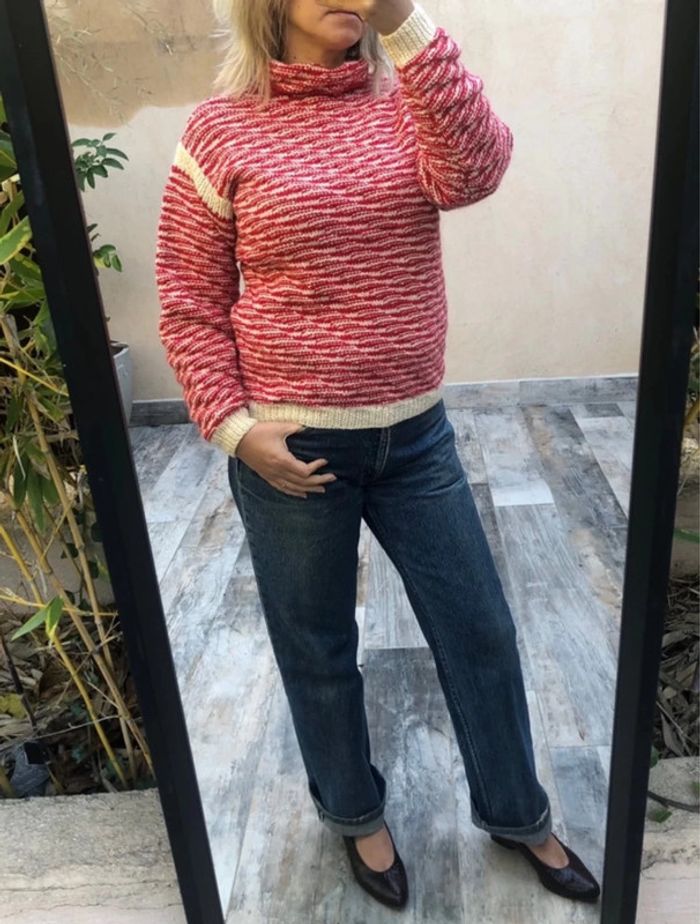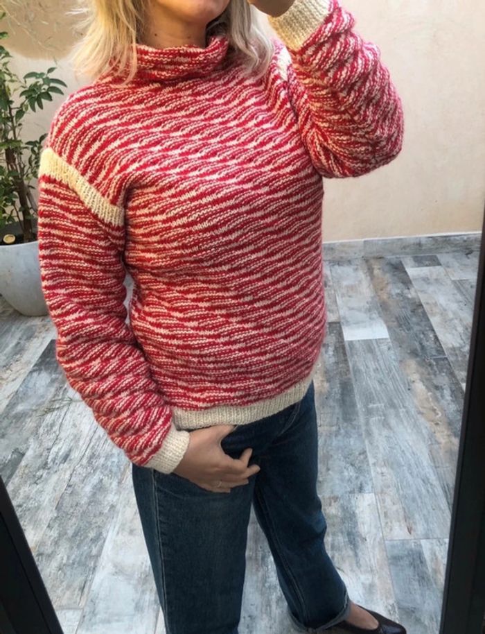 Pull col roulé vintage 60’ Largeur épaules 43 Largeur poitrine 47 Longueur manches 52 Longueur dos 55 Très très Légère trace devant voir photos Size M / 38, L / 40 (porté sur un 40/42) Bon état Couleur: Crème, Rouge Matière: Laine Époque 60's Saison Hiver