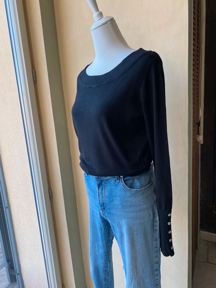 Pull noir Tex woman M Boutons en nacre décoratif Largeur épaules 40 Largeur poitrine 49 Longueur manche 63 Longueur dos 64 #pullnoirbasic