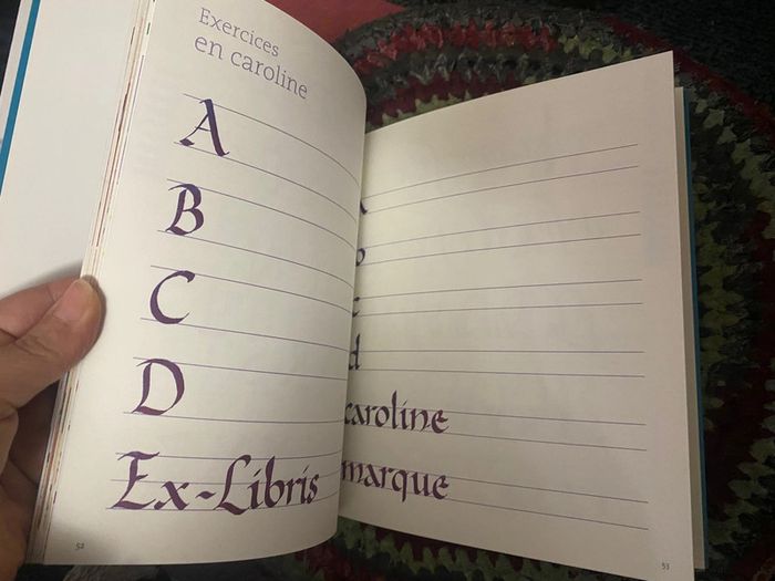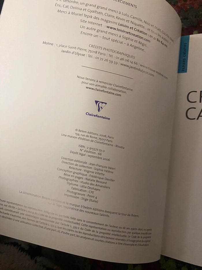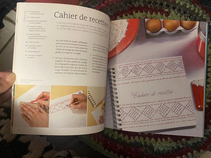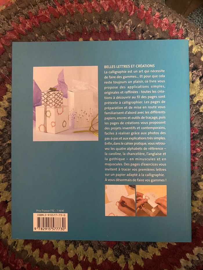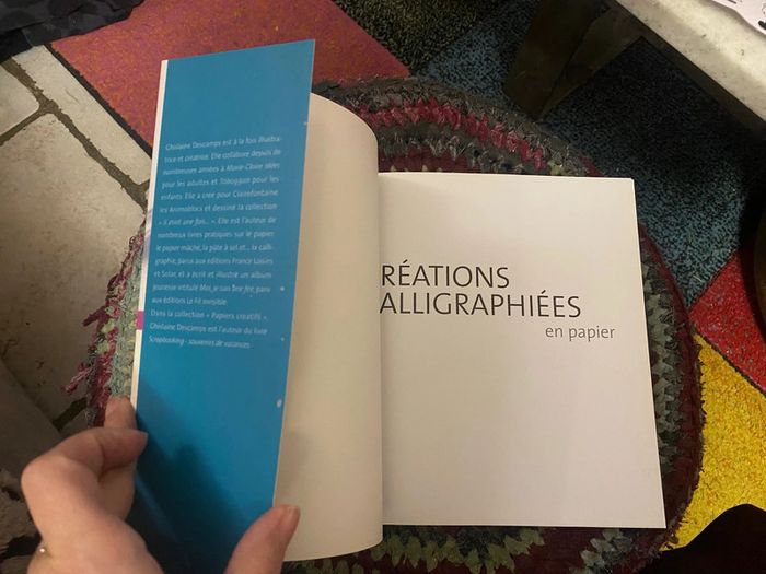 Livre Papiers créatifs Créations calligraphiées en papier Ghislaine Descamps Belem éditions un cahier d’exercices à l’intérieur Rabat marque page