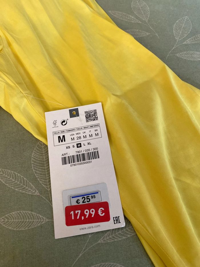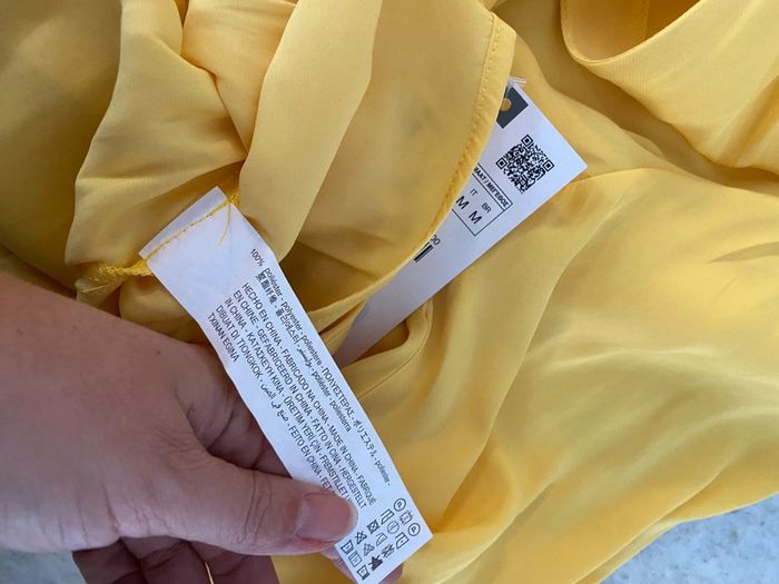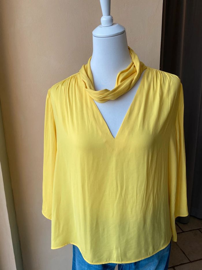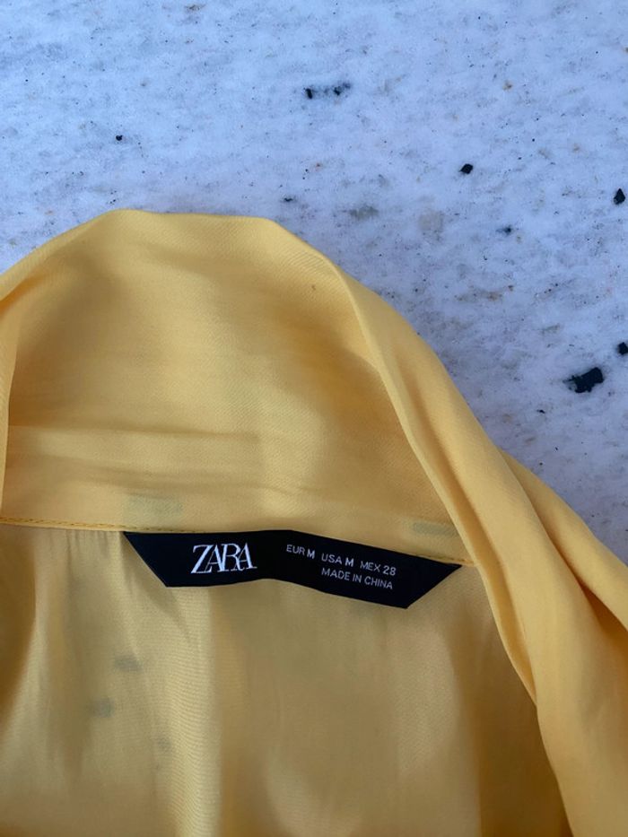 Blouse jaune Zara neuve Largeur épaules 40 Largeur poitrine 58 Longueur manche 45 Longueur dos 64 Minis taches au col qui devrait partir au lavage 😉