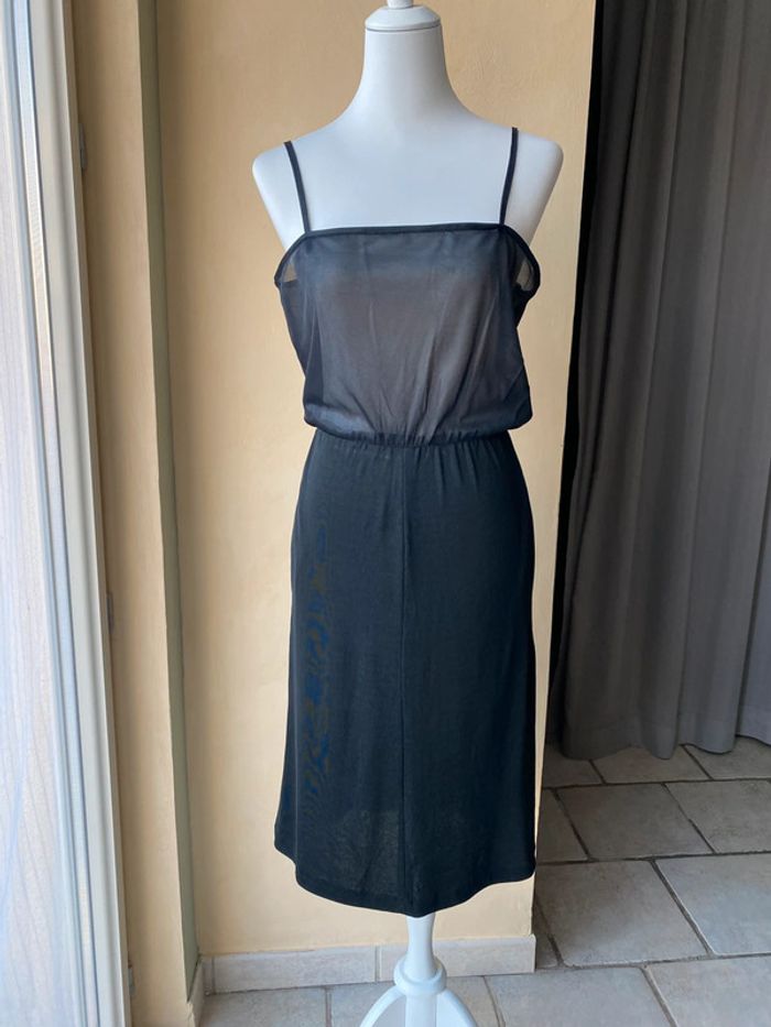 Robe noire vintage 60’ T2 Taille élastique Bustier transparent Poches Largeur poitrine 48,5 Largeur taille 27 / 44 Longueur totale 106,5 Longueur jupe 63 #vintage60s