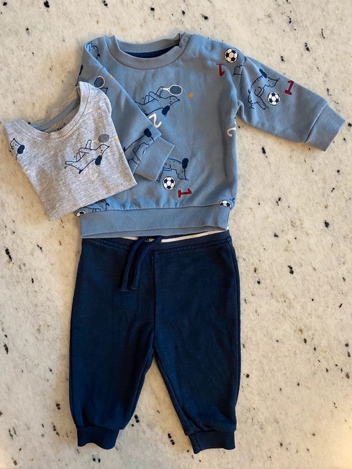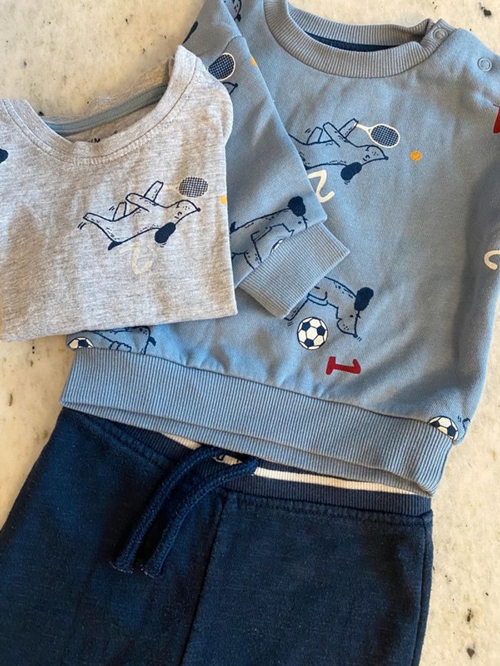 Ensemble garçon 3/6mois Primark Sweat-shirt + t-shirt manches longues + pantalon de jogging Motifs chien tennis Tbe