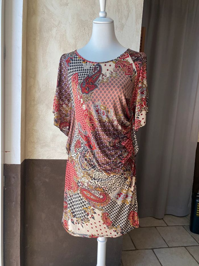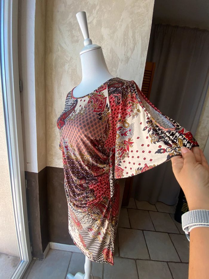 Robe à motifs Made in France 🇫🇷 Correspond à un L Largeur épaules 38 Largeur aisselles 43 Largeur taille 39 Longueur totale 80