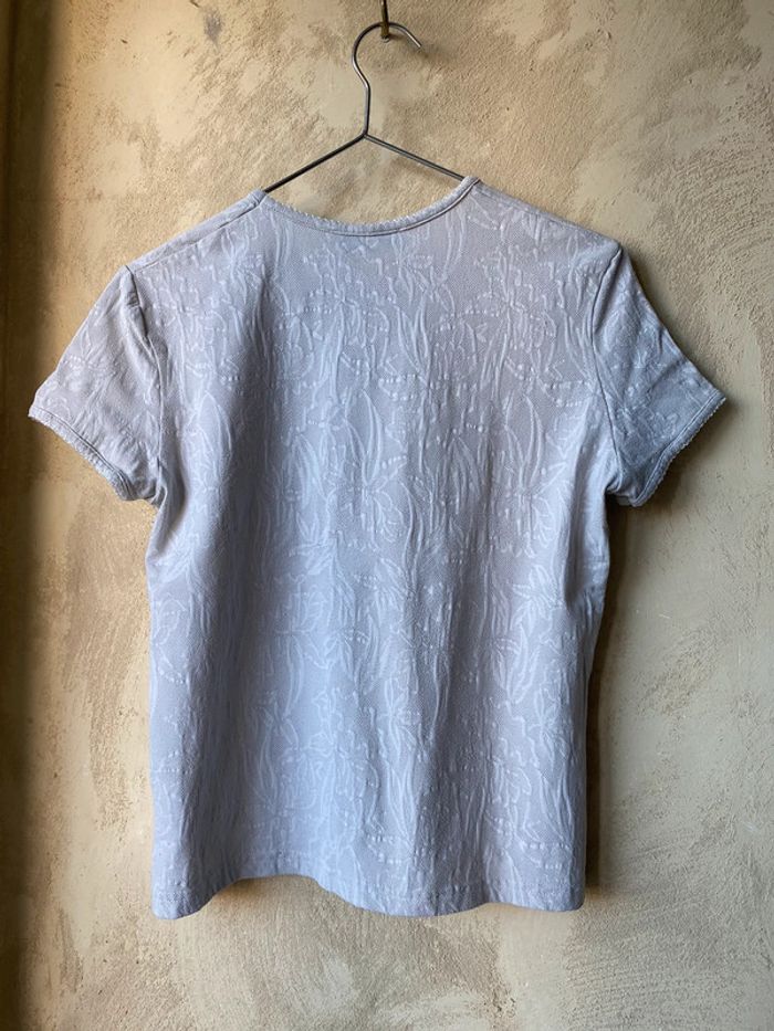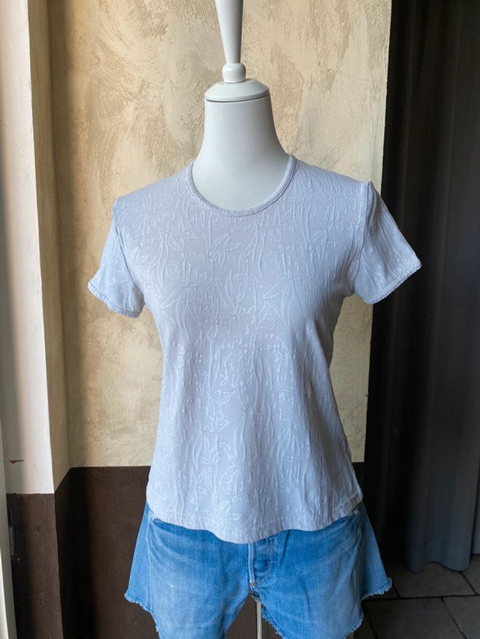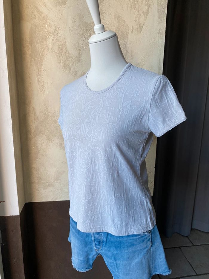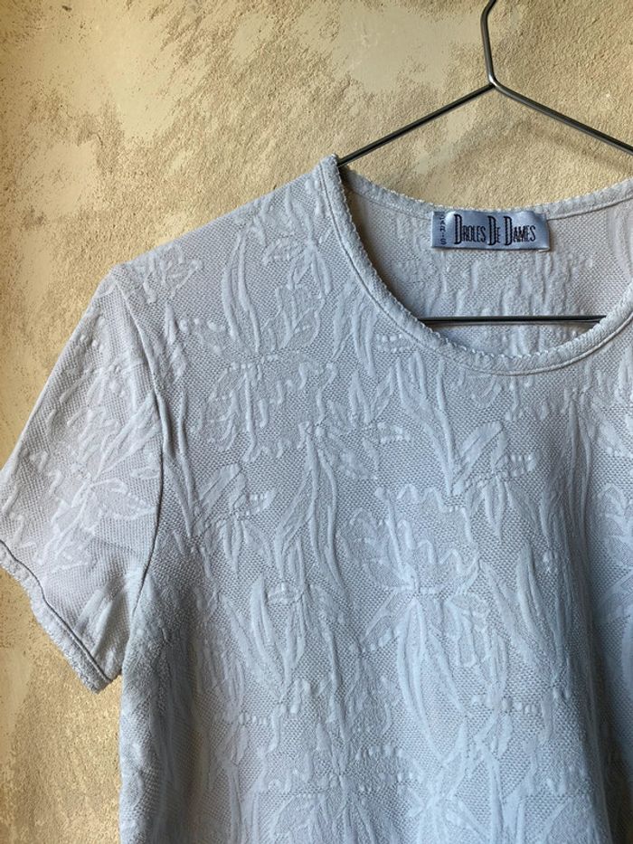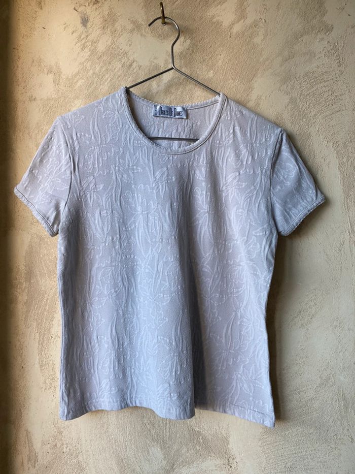 T-shirt ecru/gris, motifs ton sur ton. Drôles de dames Paris. Largeur épaules 37 Largeur poitrine 45,5 Longueur 52