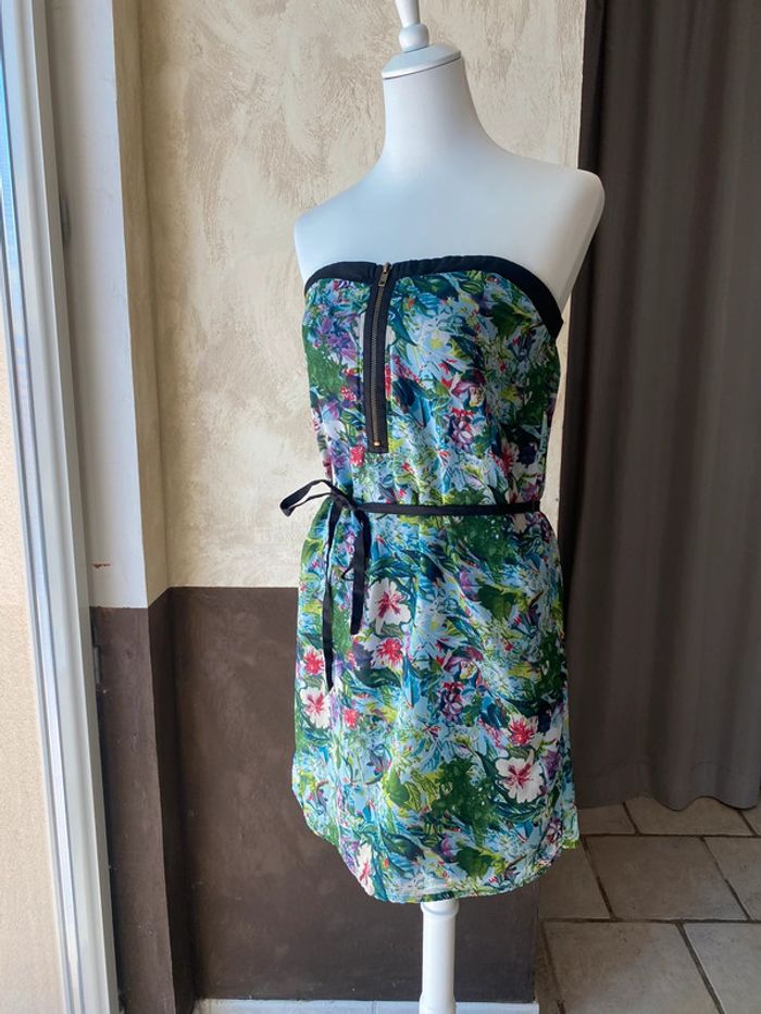 Robe bustier fleuris KWoman 38 Liserés noir Largeur poitrine 39 Largeur taille 42 Longueur 65