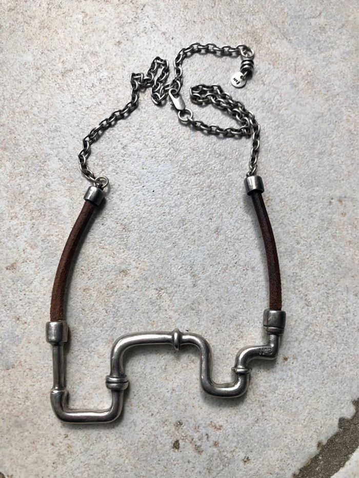 Collier original en métal et cuir N3