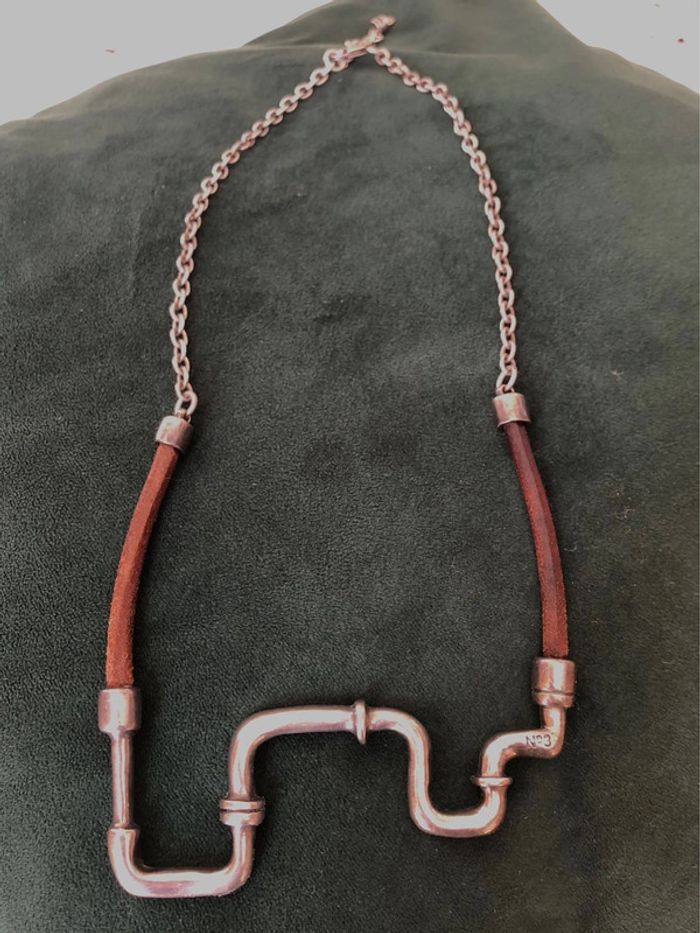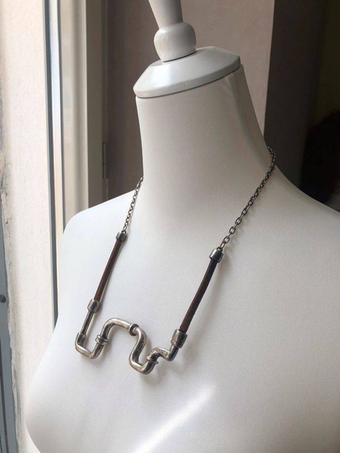 Collier original en métal et cuir N3 - photo numéro 1